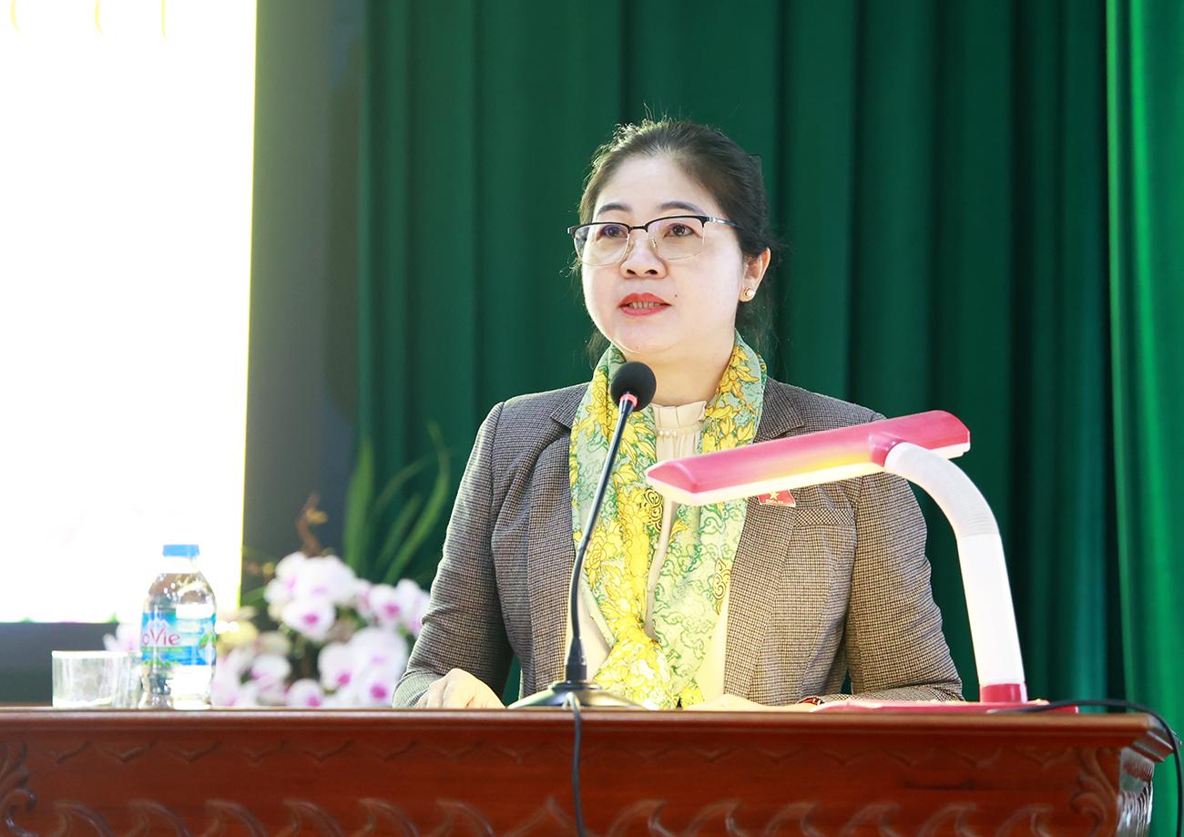 Các đại biểu: Trần Thị Vân, Tỉnh ủy viên, Phó Trưởng Đoàn ĐBQH tỉnh; Leo Thị Lịch, Đại biểu Quốc hội hoạt động chuyên trách tại Hội đồng Dân tộc của Quốc hội chủ trì hội nghị.