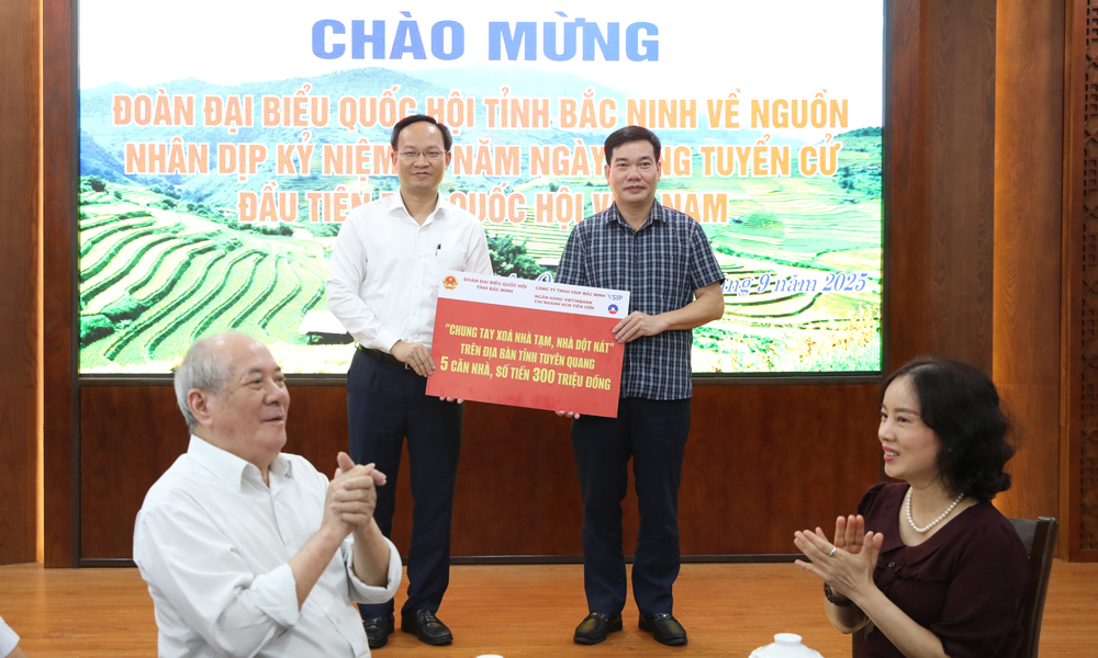 Nhân dịp này, Đoàn Đại biểu Quốc hội tỉnh Bắc Ninh trao 300 triệu đồng ủng hộ tỉnh Tuyên Quang thực hiện chương trình xoá nhà tạm, nhà dột nát.