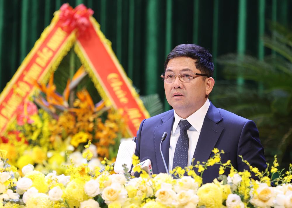| Đồng chí Nguyễn Hồng Thái, Bí thư Tỉnh ủy phát biểu tại Đại hội. |