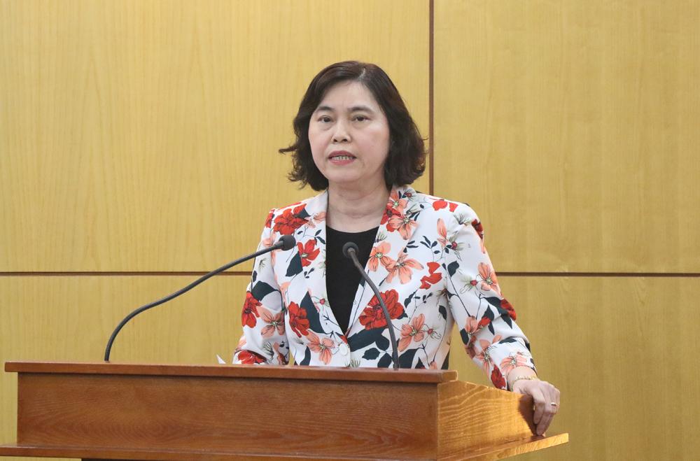 Đồng chí Trần Thị Hằng phát biểu tại buổi họp báo.