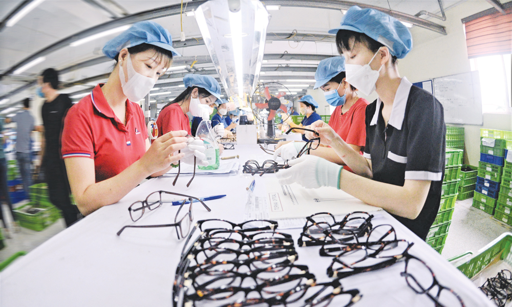 Dây chuyền sản xuất kính mắt xuất khẩu tại Công ty trách nhiệm hữu hạn Neo Optical (phường Yên Dũng). Ảnh: Việt Hưng. |