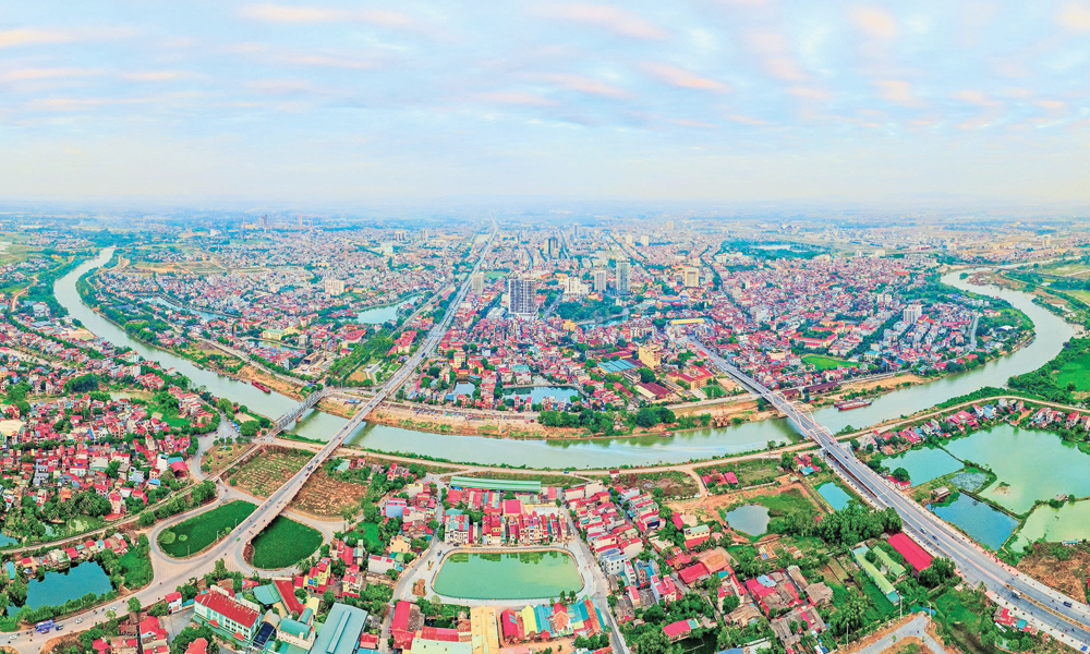 | Các vùng đô thị của tỉnh Bắc Ninh hai bên bờ sông Thương ngày càng phát triển. Ảnh: TXT. |