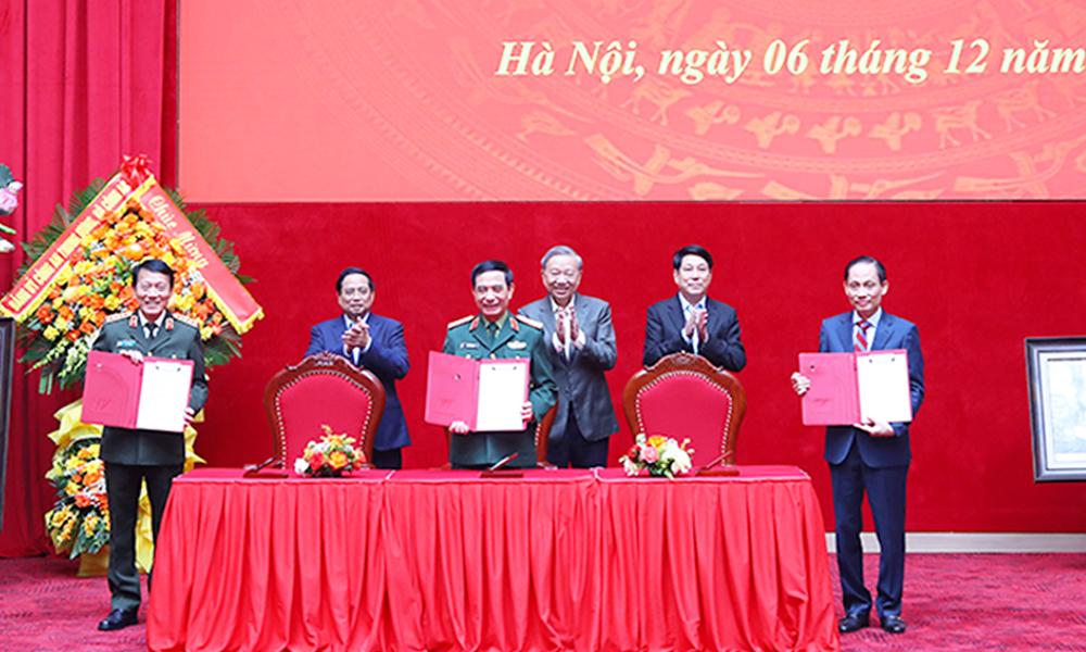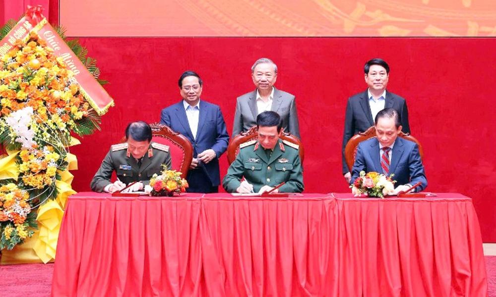 Dưới sự chứng kiến của Tổng Bí thư Tô Lâm, Chủ tịch nước Lương Cường, Thủ tướng Chính phủ Phạm Minh Chính, Đại tướng Lương Tam Quang, Đại tướng Phan Văn Giang và đồng chí Lê Hoài Trung đã ký Quy chế phối hợp.