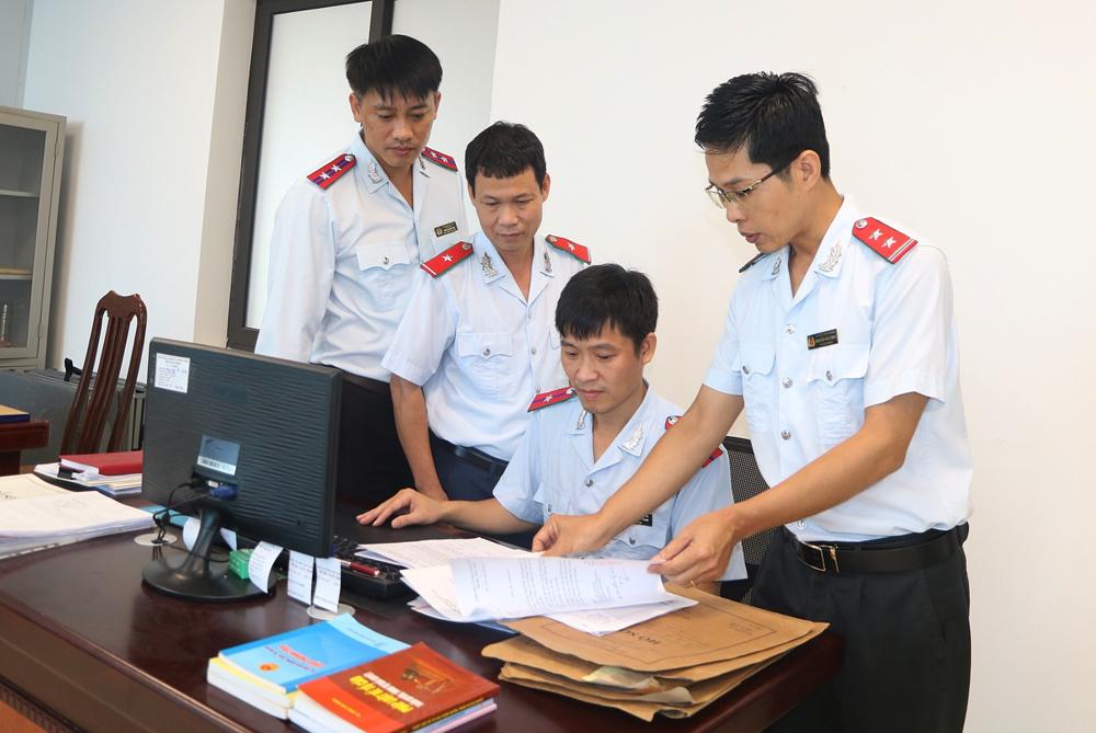 | Cán bộ Thanh tra tỉnh trao đổi chuyên môn, nghiệp vụ giải quyết đơn thư. |