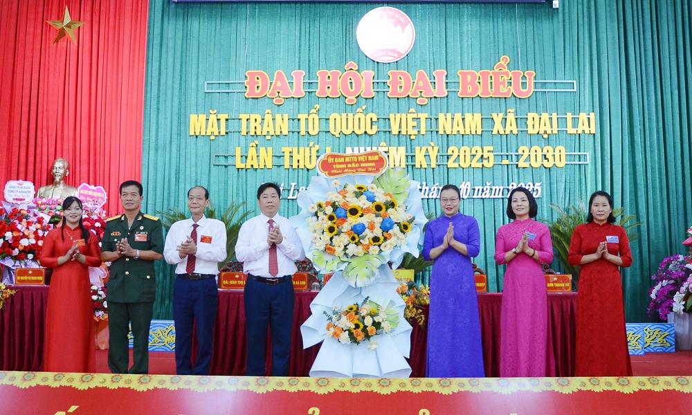 Với chủ đề “Phát huy sức mạnh đại đoàn kết toàn dân tộc, đổi mới, nâng cao chất lượng, hiệu quả hoạt động của MTTQ, đẩy mạnh công tác tinh gọn bộ máy, tích cực đổi mới sáng tạo, chuyển đổi số, góp phần xây dựng xã Đại Lai phát triển, giàu đẹp, văn minh”, nhiệm kỳ 2025-2030, MTTQ xã Đại Lai tiếp tục phát huy vai trò nòng cốt trong xây dựng khối đại đoàn kết toàn dân; đổi mới nội dung, phương thức hoạt động; tăng cường công tác tuyên truyền tạo sự đồng thuận xã hội, khơi dậy tinh thần yêu nước, ý chí tự lực, tự cường, khát vọng phát triển quê hương.