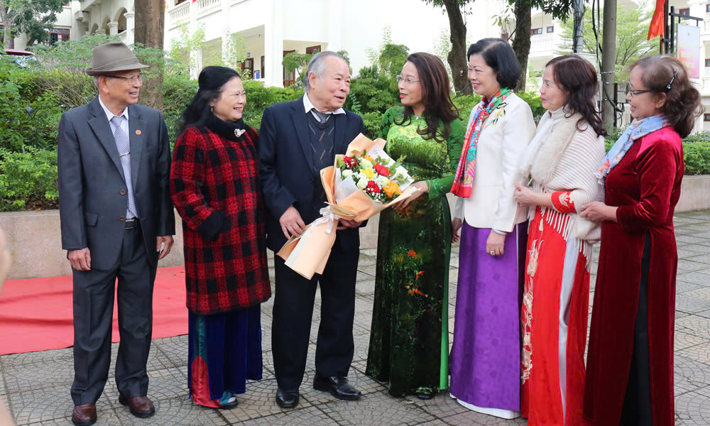 | Đồng chí Nguyễn Thị Hương và đồng chí Lê Xuân Lợi đến dự chúc mừng Lễ kỷ niệm 20/11 tại Trường Trung học phổ thông Hàn Thuyên. |