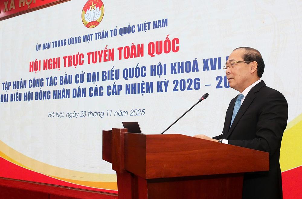 BẮC NINH - Ngày 23/11, tại Hà Nội, Ủy ban Trung ương MTTQ Việt Nam tổ chức Hội nghị trực tiếp kết hợp trực tuyến tập huấn công tác bầu cử đại biểu Quốc hội (ĐBQH) khóa XVI và đại biểu HĐND các cấp nhiệm kỳ 2026 - 2031. Đồng chí Hoàng Công Thủy, Phó Chủ tịch Ủy ban Trung ương MTTQ Việt Nam, Phó Trưởng Ban Chỉ đạo bầu cử Ủy ban Trung ương MTTQ Việt Nam chủ trì.