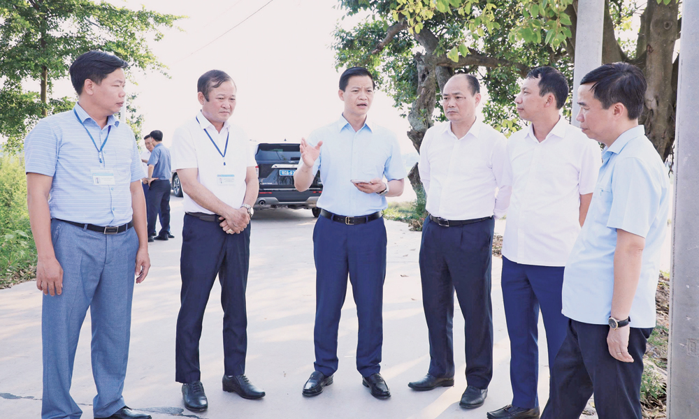 Đồng chí Nguyễn Đại Lượng kiểm tra tiến độ thực hiện dự án đầu tư xây dựng công trình giao thông tại địa bàn. Ảnh: Trịnh Lan. |