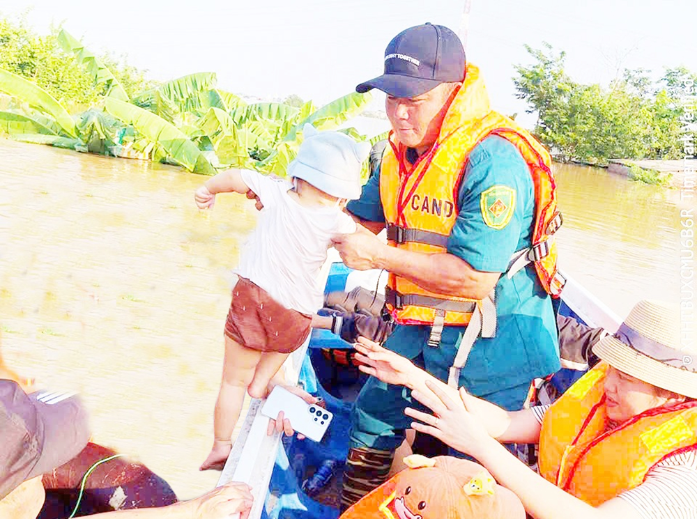 Trong đợt bão lũ vừa qua, anh Mười cùng các lực lượng đã cứu giúp được hàng chục người dân cùng nhiều tài sản từ nơi ngập lụt ra khu vực an toàn. Anh Mười kể: “Hơn 19 giờ tối, nhận được tin báo có 3 người mắc kẹt trong chùa làng và đã bị ngập đến cổ, điện không có, trời tối đen như mực, nước chảy xiết, tôi cùng anh em phải dùng đèn pin, bám vào dây điện và buộc các áo phao vào nhau để đưa người ra ngoài”.