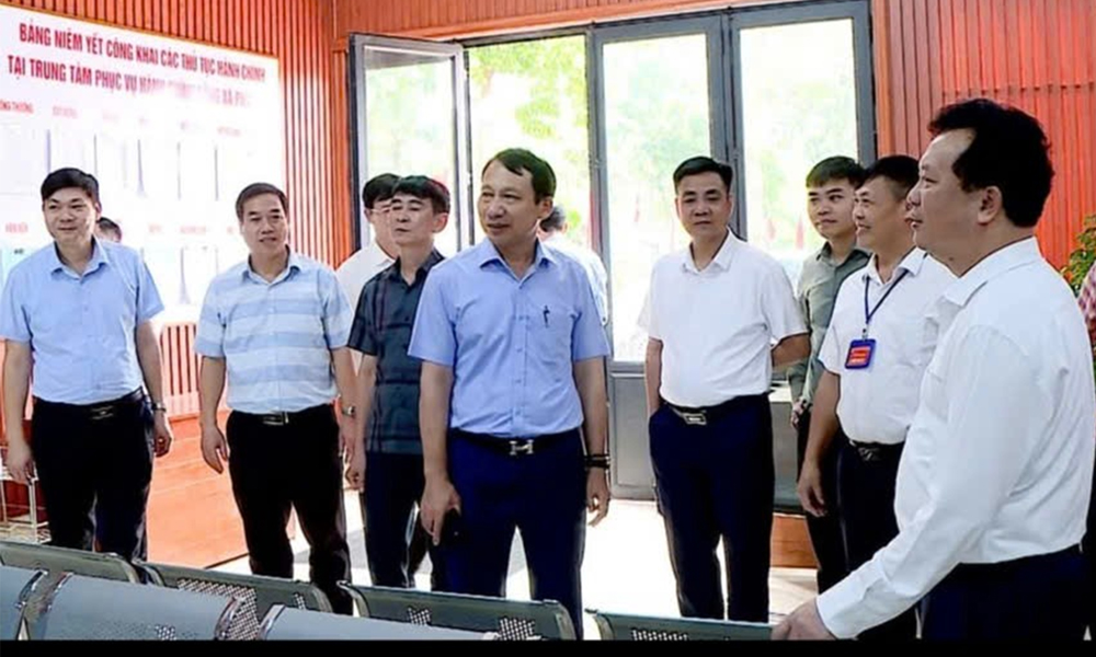 | Lãnh đạo Đảng ủy xã Phật Tích cùng đại diện lãnh đạo các ngành chức năng của tỉnh nắm bắt tình hình hoạt động của Trung tâm Phục vụ hành chính công xã. |