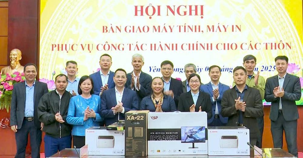 | Ủy ban MTTQ xã Yên Phong bàn giao máy tính, máy in phục vụ công tác hành chính cho các thôn. |