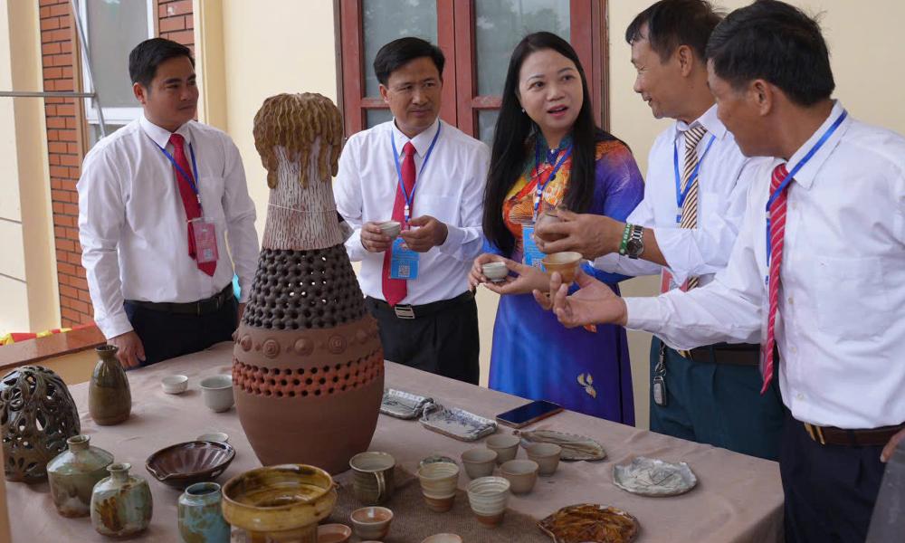 | Các đại biểu tham quan trưng bày sản phẩm gốm Phù Lãng. |