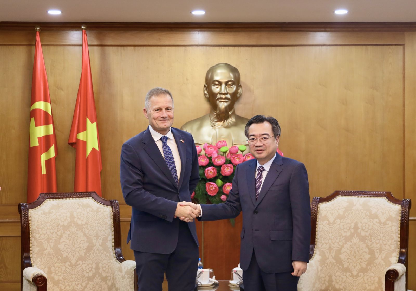 Đồng chí Nguyễn Thanh Nghị, Trưởng Ban Chính sách, chiến lược Trung ương tiếp và làm việc với Đại sứ Đan Mạch tại Việt Nam