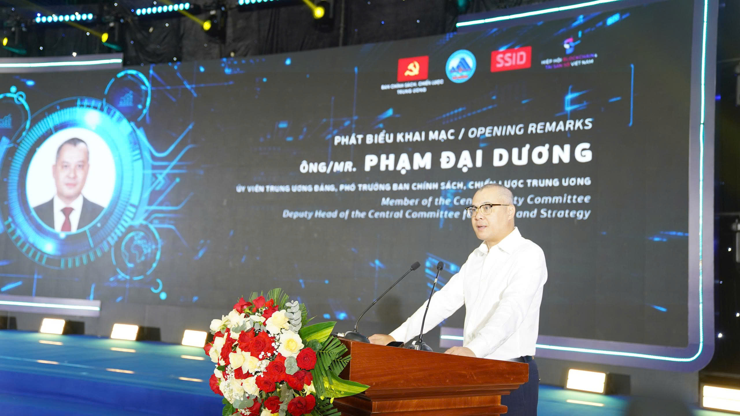 Phát biểu khai mạc, đồng chí Phạm Đại Dương, Ủy viên Trung ương Đảng, Phó Trưởng Ban Chính sách, chiến lược Trung ương nhấn mạnh “Việt Nam đã và đang thể hiện quyết tâm mạnh mẽ trong việc thúc đẩy quá trình chuyển đổi số quốc gia. Chúng ta nhận thức rõ rằng, để hiện thực hóa tầm nhìn này, việc phát triển và ứng dụng công nghệ mới, trong đó có Blockchain, là hết sức quan trọng. Công nghệ Blockchain không chỉ là xu hướng toàn cầu mà còn là chìa khóa để Việt Nam nâng cao năng lực cạnh tranh, hội nhập sâu rộng hơn vào nền kinh tế số quốc tế.”
