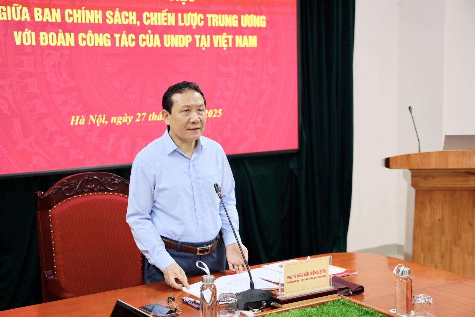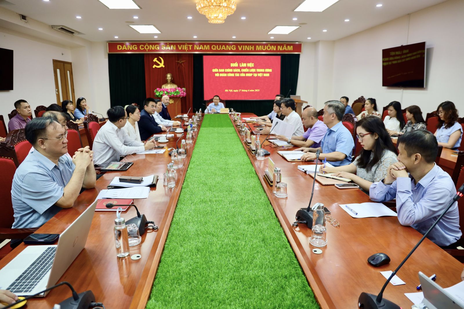 Phó Trưởng Ban Chính sách, chiến lược Trung ương Nguyễn Hồng Sơn làm việc với các chuyên gia của UNDP