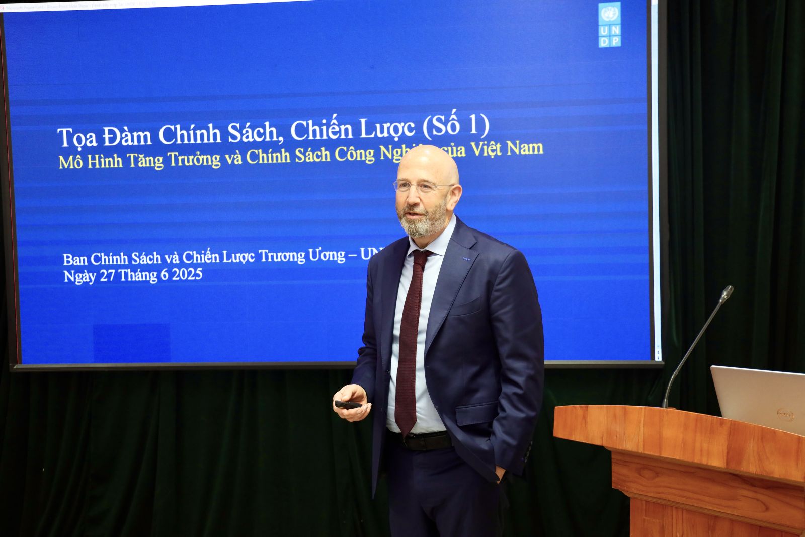 Đồng chí Phó Trưởng Ban Nguyễn Hồng Sơn đánh giá cao các chuyên gia của UNDP đã có làm việc với Ban Chính sách, chiến lược Trung ương, trình bày các báo cáo nghiên cứu của mình về mô hình tăng trưởng và chính sách công nghiệp của Việt Nam, là tài liệu tham khảo quan trọng cho Ban trong quá trình xây dựng đề án về các giải pháp chiến lược nhằm thúc đẩy tăng trưởng 2 con số trong kỷ nguyên mới. Đồng chí đánh giá cao các chuyên đề trong khuôn khổ hợp tác giũa Ban và UNDP; đồng thời đề nghị các chuyên gia, lãnh đạo vụ, đơn vị của Ban thảo luận sâu về các nội dung của báo báo, đặt câu hỏi trao đổi với các chuyên gia của UNDP về các vấn đề liên quan.