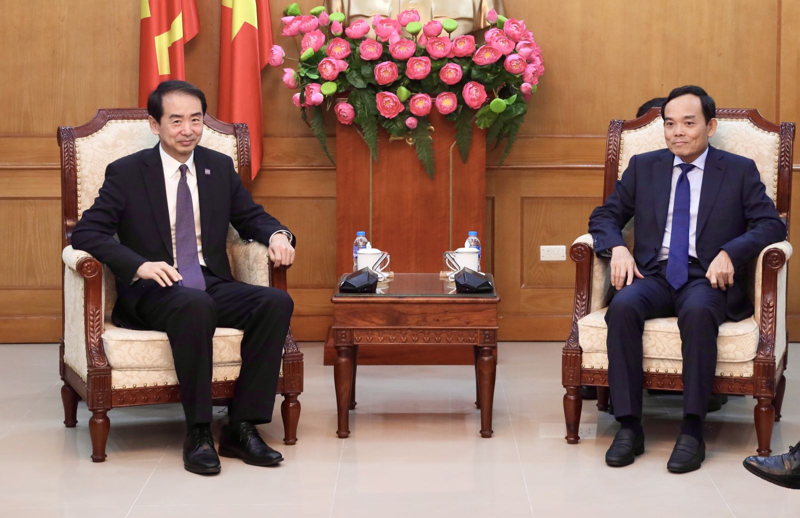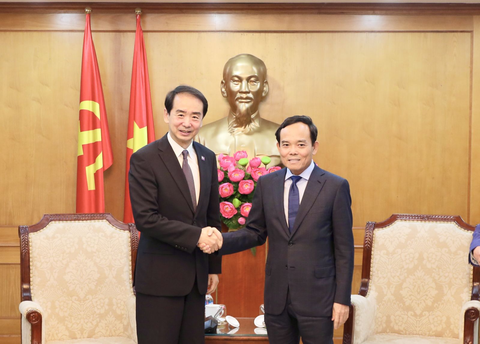 Đồng chí Trần Lưu Quang chào mừng Đại sứ Trung Quốc Hà Vĩ