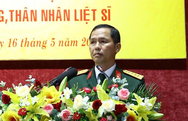 Đại tá Đỗ Xuân Hùng, Chỉ huy trưởng Bộ CHQS tỉnh chia sẻ về công tác huy động LLVT hỗ trợ ngày công, vận chuyển vật liệu để hỗ trợ xóa nhà tạm, nhà dột nát. Ảnh: NGUYỄN DŨNG.