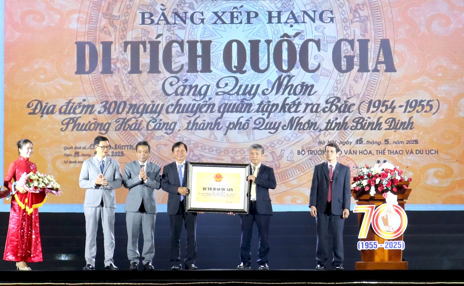 Lãnh đạo Bộ Văn hóa, Thể thao và Du lịch trao Bằng Di tích quốc gia “Cảng Quy Nhơn - Địa điểm 300 ngày chuyển quân tập kết ra Bắc” cho lãnh đạo TP Quy Nhơn. Đây là niềm tự hào to lớn, là sự ghi nhận đối với những đóng góp của Đảng bộ và nhân dân tỉnh Bình Định trong hành trình đấu tranh giải phóng dân tộc, thống nhất nước nhà.