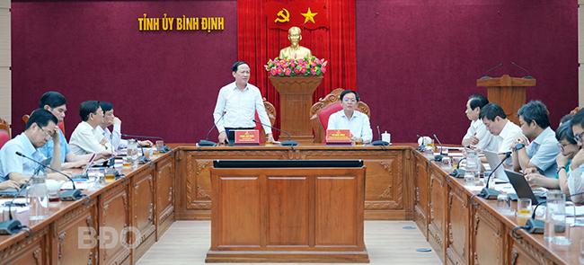 Bí thư Tỉnh ủy Hồ Quốc Dũng phát biểu kết luận cuộc họp. Ảnh: N.H