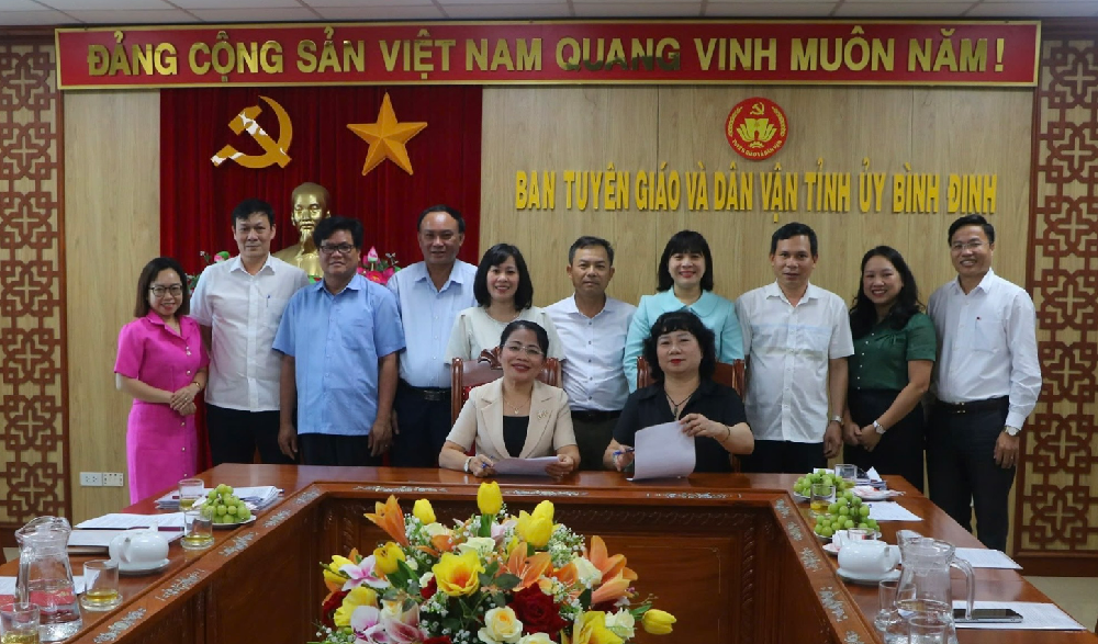 Tham dự buổi làm việc, về phía tỉnh Bình Định có đồng chí Nguyễn Thị Phong Vũ - Ủy viên Ban Thường vụ Tỉnh ủy, Trưởng Ban Tuyên giáo và Dân vận Tỉnh ủy; các đồng chí Phó Trưởng Ban và đại diện lãnh đạo Văn phòng Ban.