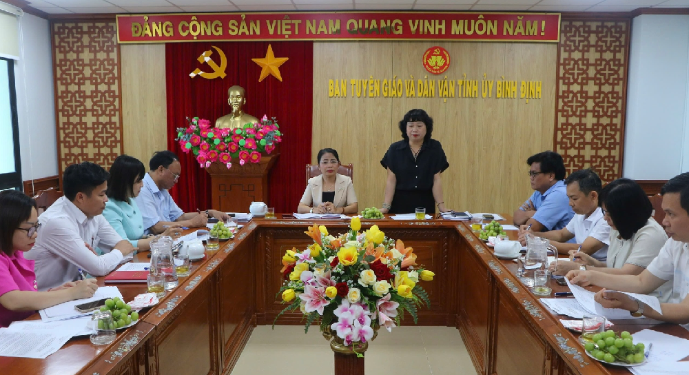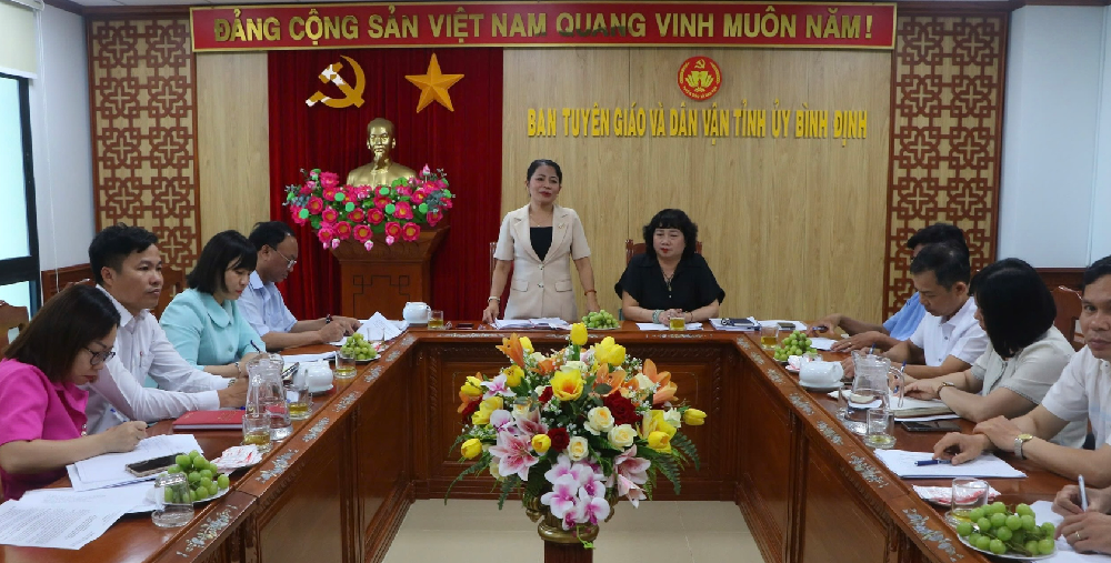 Đồng chí Nguyễn Thị Phong Vũ - Ủy viên Ban Thường vụ Tỉnh ủy, Trưởng Ban Tuyên giáo và Dân vận Tỉnh ủy Bình Định phát biểu kết luận buổi làm việc