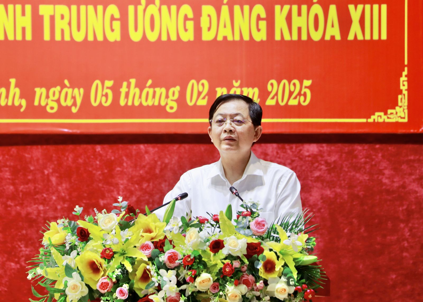 Tại Hội nghị, Bí thư Tỉnh ủy Hồ Quốc Dũng đã thông tin nhanh nội dung, kết quả Hội nghị Ban Chấp hành Trung ương Đảng khóa XIII phiên họp tháng 1/2025. Theo đó, trong 2 ngày (23 - 24/01) tại Hà Nội, Ban Chấp hành Trung ương Đảng đã họp cho ý kiến 5 nội dung với 3 nhóm vấn đề quan trọng: Tổng kết Nghị quyết 18 của Ban Chấp hành Trung ương Đảng khóa XII “Một số vấn đề về tiếp tục đổi mới, sắp xếp tổ chức bộ máy của hệ thống chính trị tinh gọn, hoạt động hiệu lực, hiệu quả”; Đề án bổ sung mục tiêu tăng trưởng GDP năm 2025 từ 8% trở lên và tăng trưởng 2 con số trong giai đoạn 2026-2030; công tác cán bộ theo thẩm quyền của Trung ương.