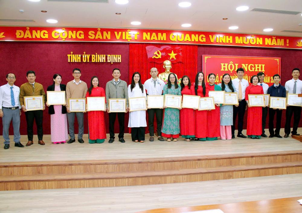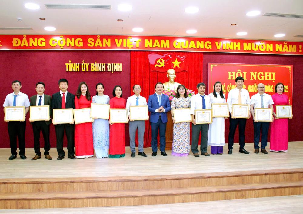 Nhân dịp này, Hội nghị đã biểu dương, khen thưởng các tập thể, cá nhân đã hoàn thành xuất sắc nhiệm vụ công tác năm 2024: Trao tặng Bằng khen của Chủ tịch Ủy ban nhân dân tỉnh cho 02 cá nhân; Chánh Văn phòng Tỉnh ủy đã trao tặng Danh hiệu chiến sĩ thi đua cấp cơ sở cho 17 cá nhân và Giấy khen cho 03 tập thể phòng: Tổng hợp; Hành chính, Lưu trữ; Quản trị và 20 cá nhân; trao tặng Giấy khen của Công đoàn Viên chức tỉnh cho 04 cá nhân đã có thành tích xuất sắc trong hoạt động công đoàn.