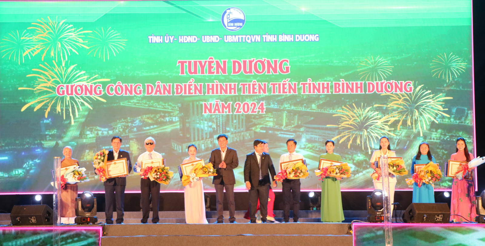 Tại chương trình, 3 vận động viên thể thao tỉnh Bình Dương đạt thành tích cao tại các giải thi đấu quốc tế năm 2023 đã được nhận bằng khen của Thủ tướng Chính phủ. UBND tỉnh tuyên dương 21 công dân tiêu biểu tỉnh Bình Dương năm 2024 trên các lĩnh vực kinh tế, văn hóa, xã hội, quốc phòng, an ninh đã có nhiều đóng góp cho cộng đồng, làm việc đạt năng suất, làm giàu chính đáng, góp sức cho sự phồn vinh, thịnh vượng của đất nước; tuyên dương 20 vận động viên, huấn luyện viên thể thao đạt thành tích xuất sắc năm 2024.