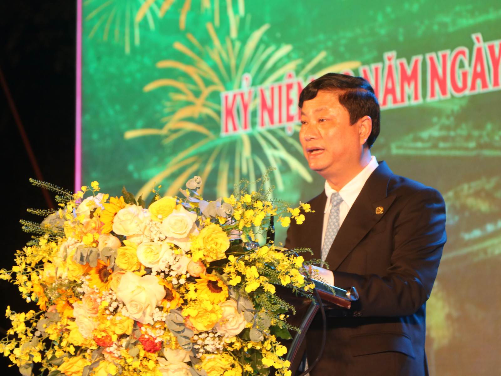 Ông Võ Văn Minh, Phó Bí thư Tỉnh ủy, Chủ tịch UBND tỉnh phát biểu tại chương trình kỷ niệm