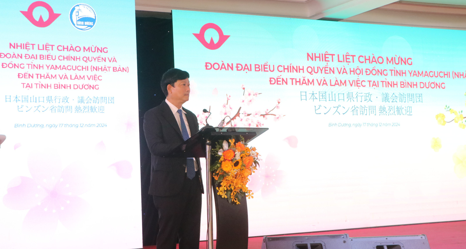Ngài Muraoka Tsugumasa, Thống đốc tỉnh Yamaguchi phát biểu tại buổi tiếp