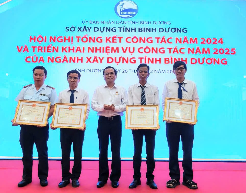 Lãnh đạo Sở Xây dựng trao bằng khen của Chủ tịch UBND tỉnh cho các cá nhân hoàn thành xuất sắc nhiệm vụ từ năm 2022 đến năm 2023