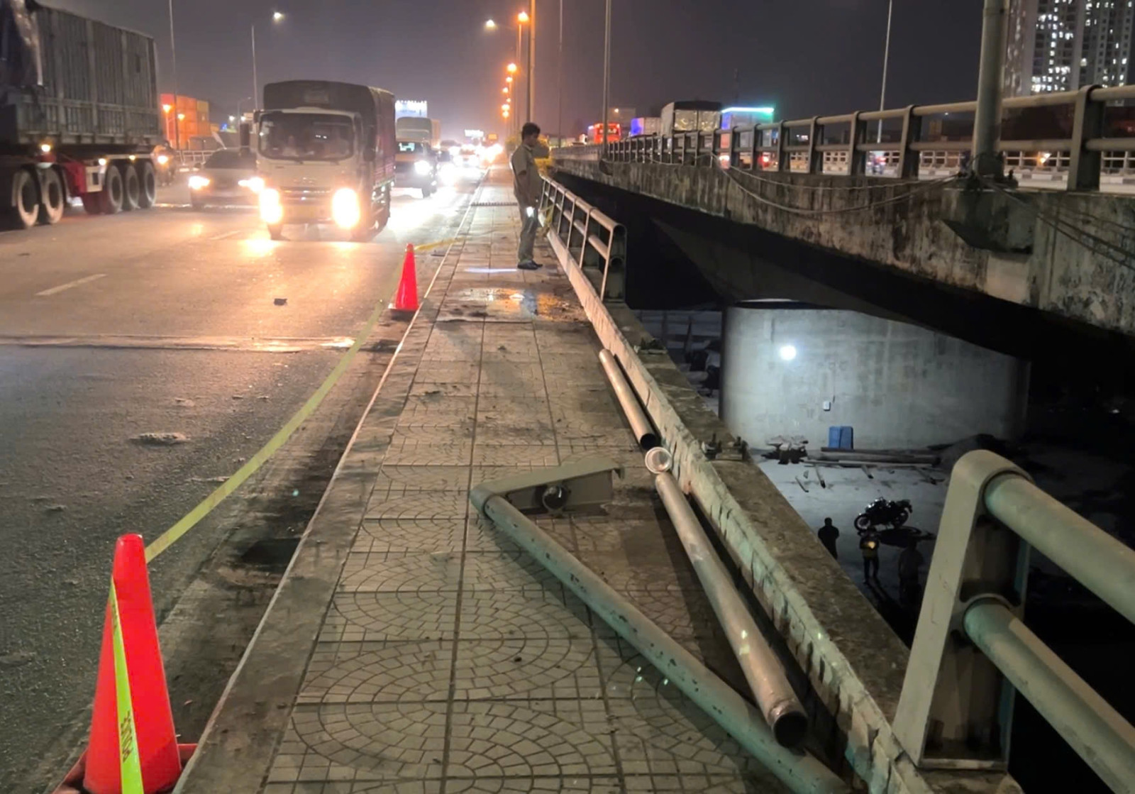Hiện trường vụ ô tô tông lan can cầu Đồng Nai rơi xuống sông