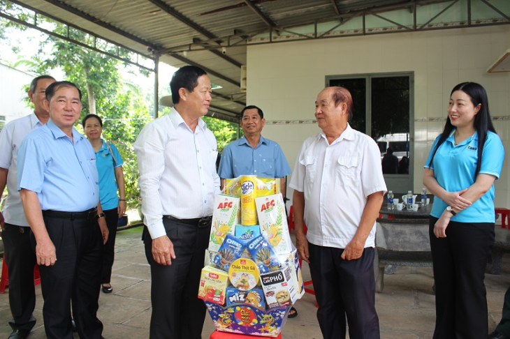 Đồng chí Bùi Thanh Nhân, UVTV, Trưởng Ban Dân vận Tỉnh ủy tặng quà cho người dân có hoàn cảnh khó khăn và cùng các chức sắc tham gia hoạt động thực hiện "Ngày thứ bảy văn minh"