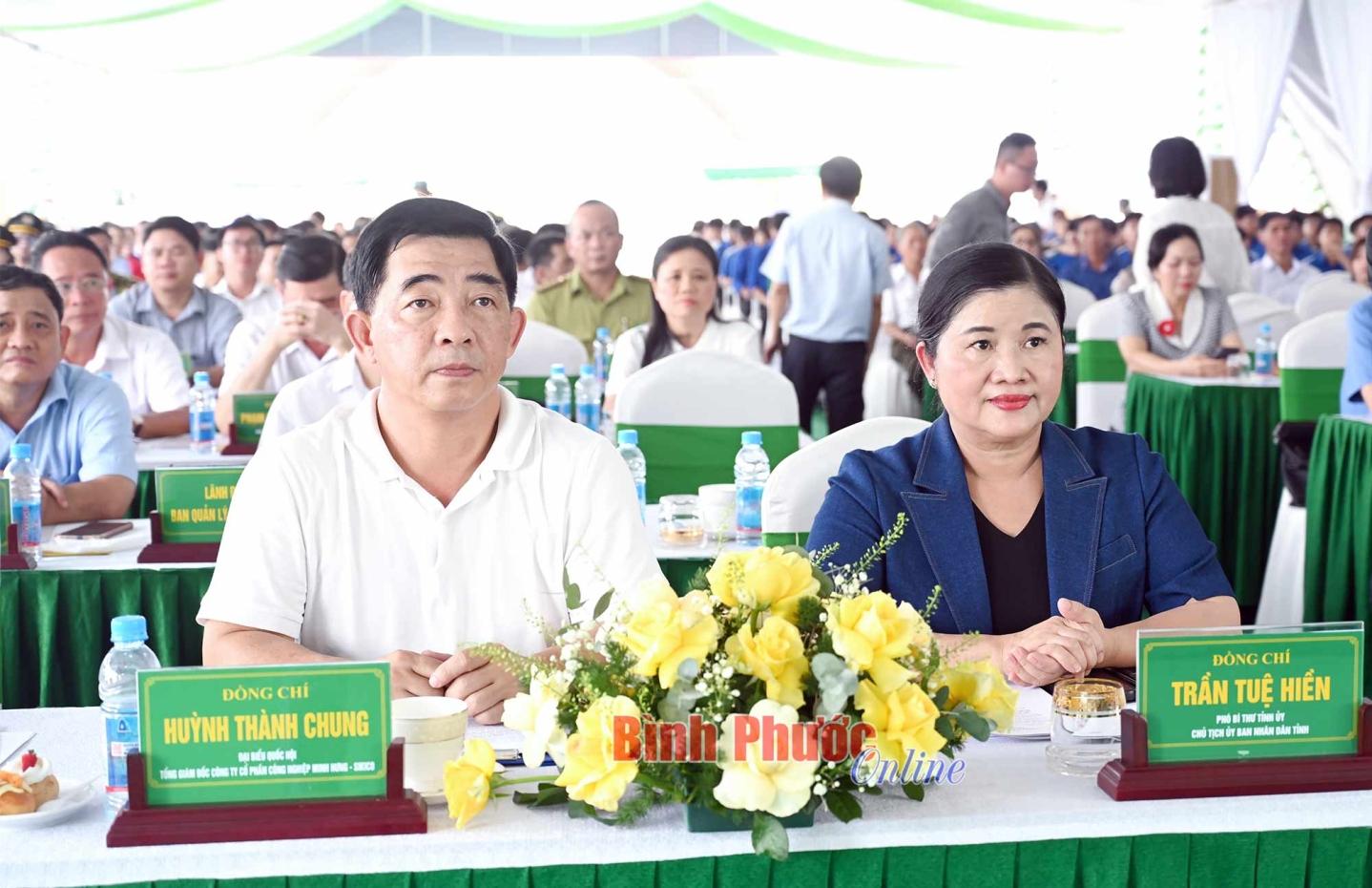 Các đại biểu dự lễ phát động trồng cây “Đời đời nhớ ơn Bác Hồ” do Tỉnh ủy, HĐND, UBND, Ủy ban MTTQ Việt Nam tỉnh tổ chức tại Khu công nghiệp Minh Hưng - Sikico, huyện Hớn Quản