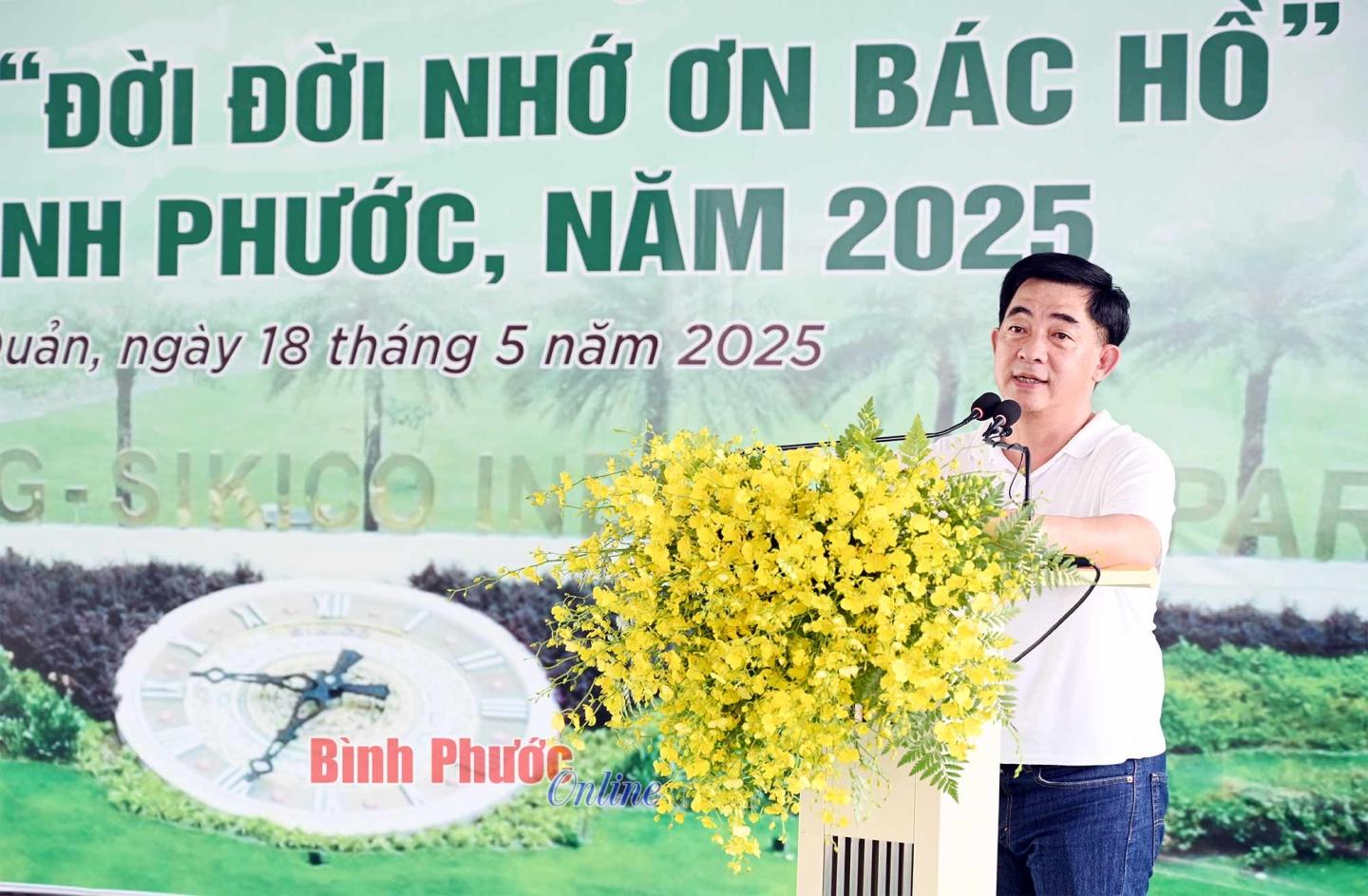 Ông Huỳnh Thành Chung, đại biểu Quốc hội tỉnh, Tổng Giám đốc Công ty Cổ phần Công nghiệp Minh Hưng - Sikico phát biểu hưởng ứng và cam kết tham gia các hoạt động trồng cây xanh tại tỉnh Bình Phước