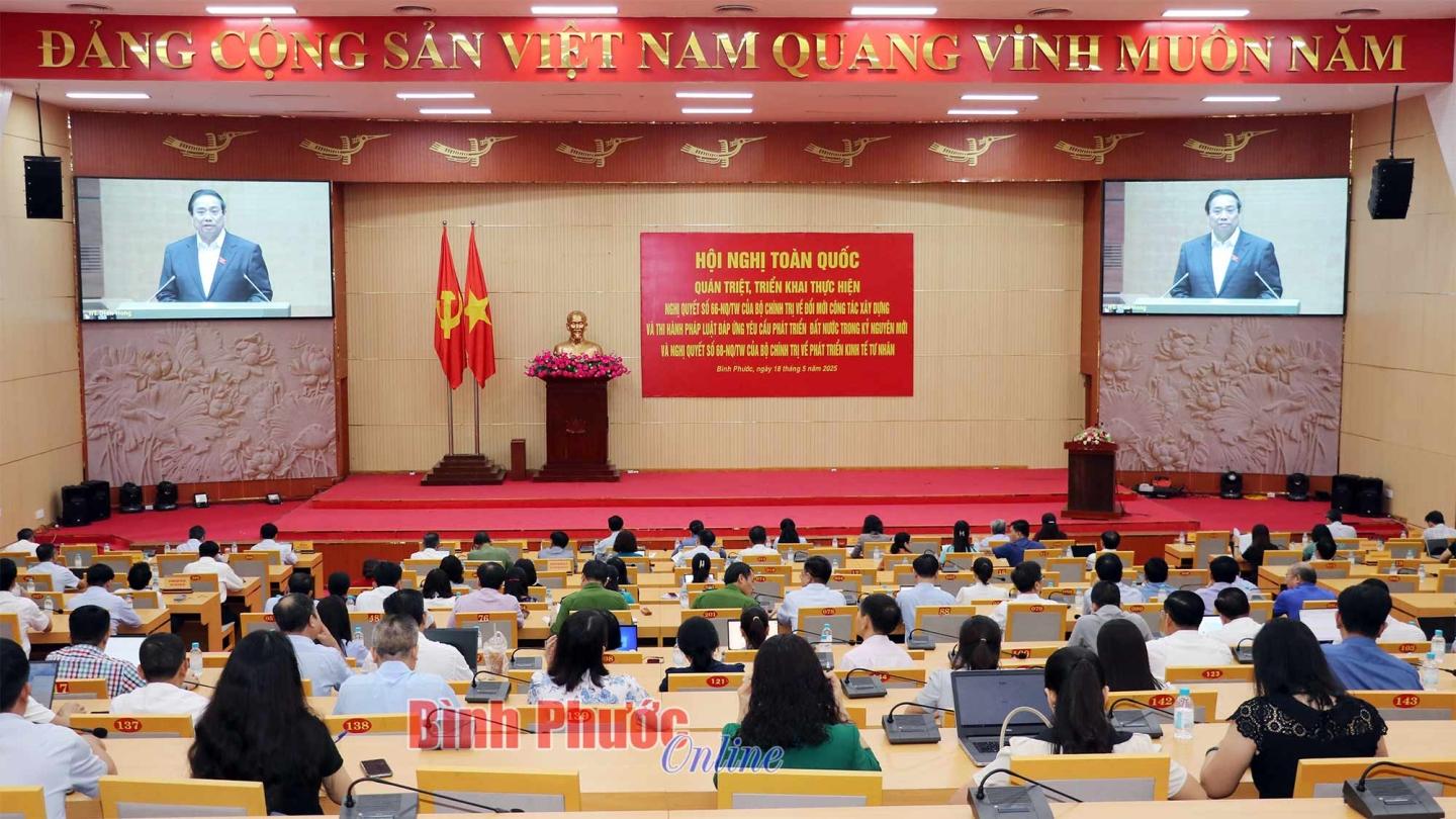 Thường trực Tỉnh ủy và các đại biểu dự hội nghị tại điểm cầu trường Chính trị tỉnh Bình Phước