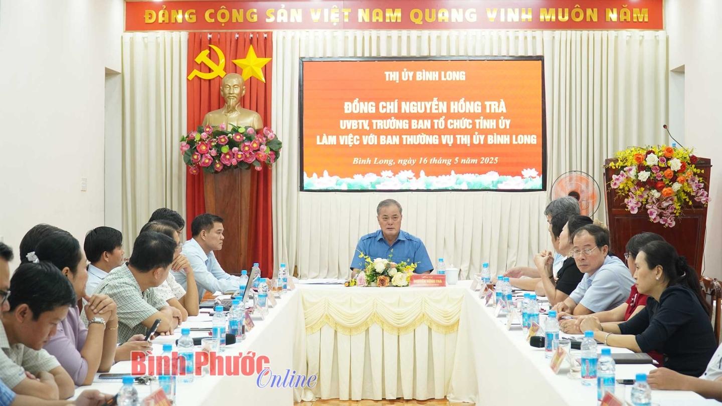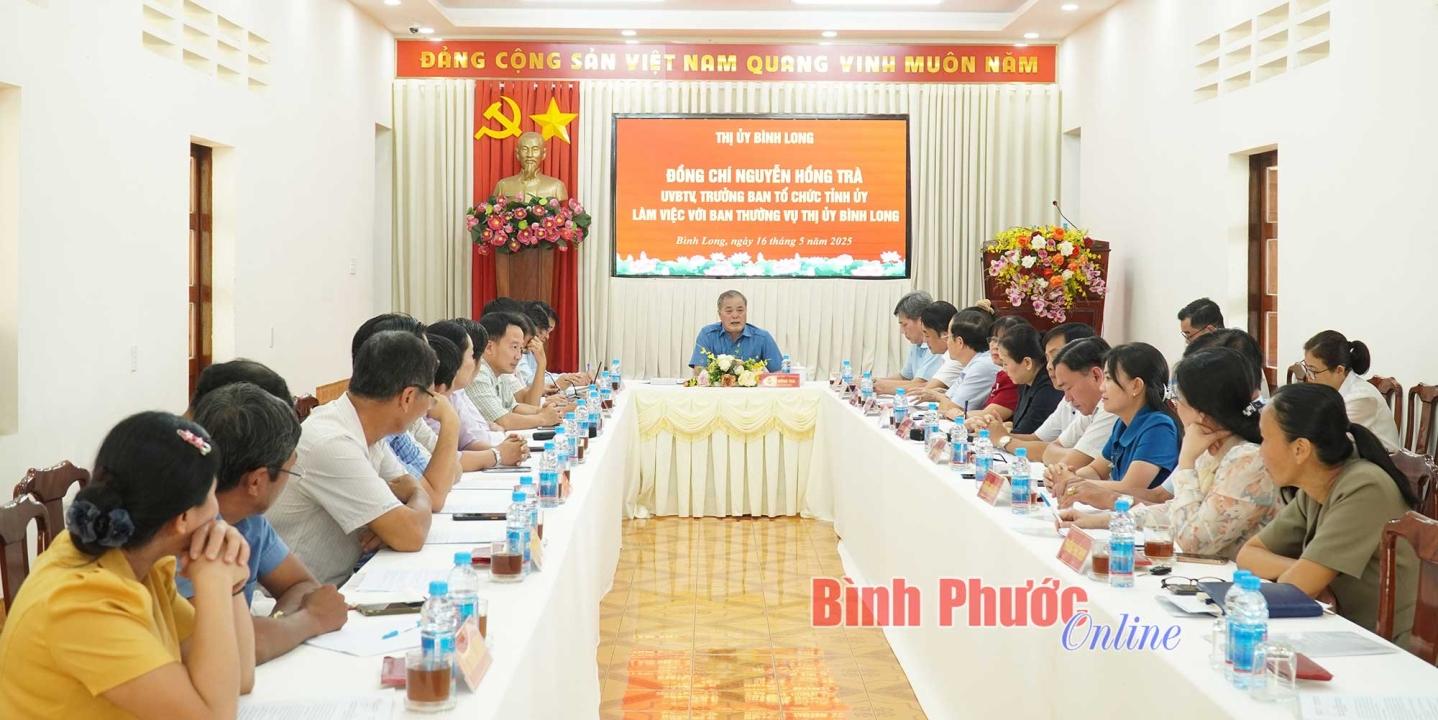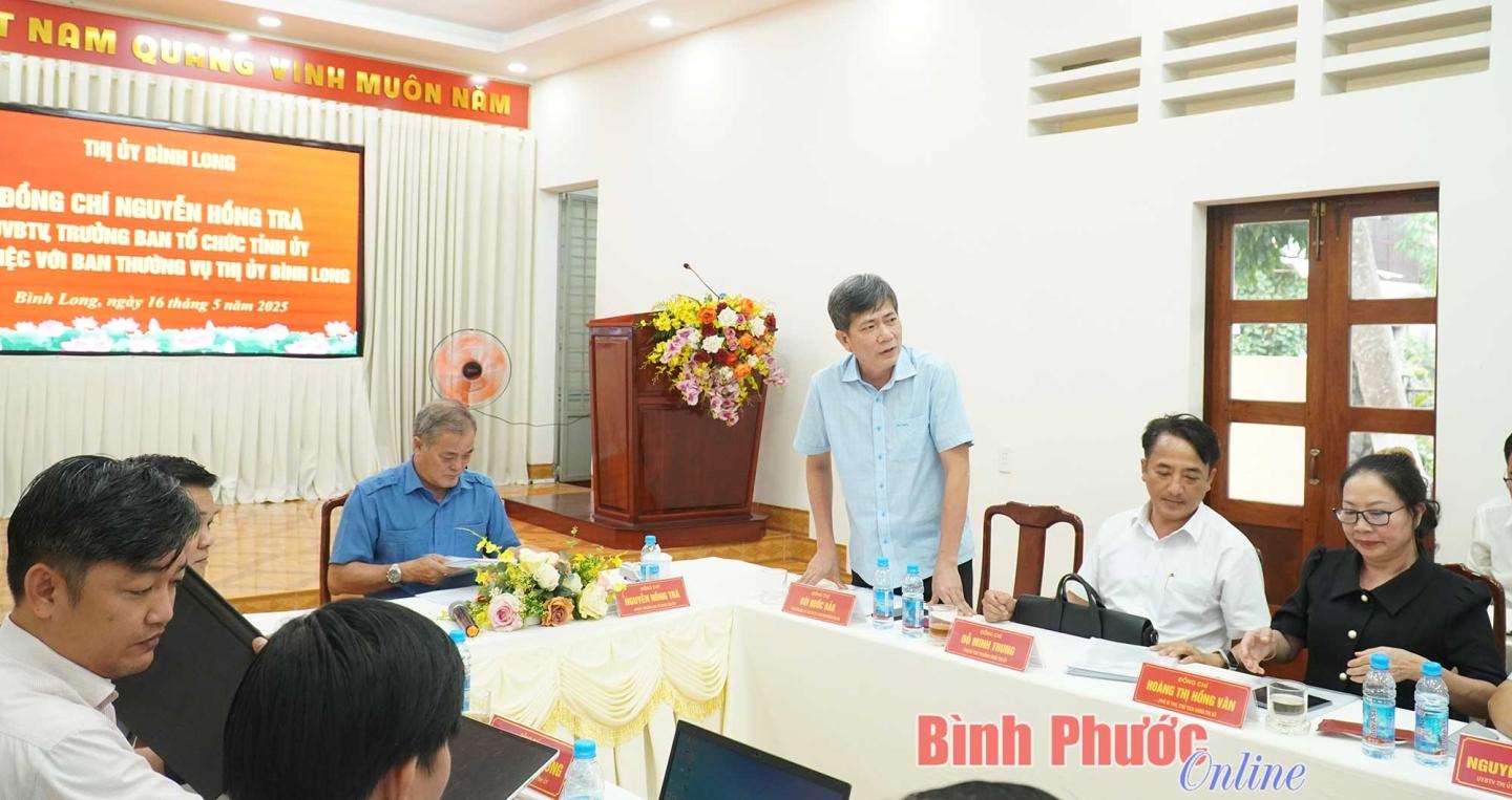 Trưởng Ban Tổ chức Tỉnh ủy Nguyễn Hồng Trà làm việc với Ban Thường vụ Thị ủy Bình Long