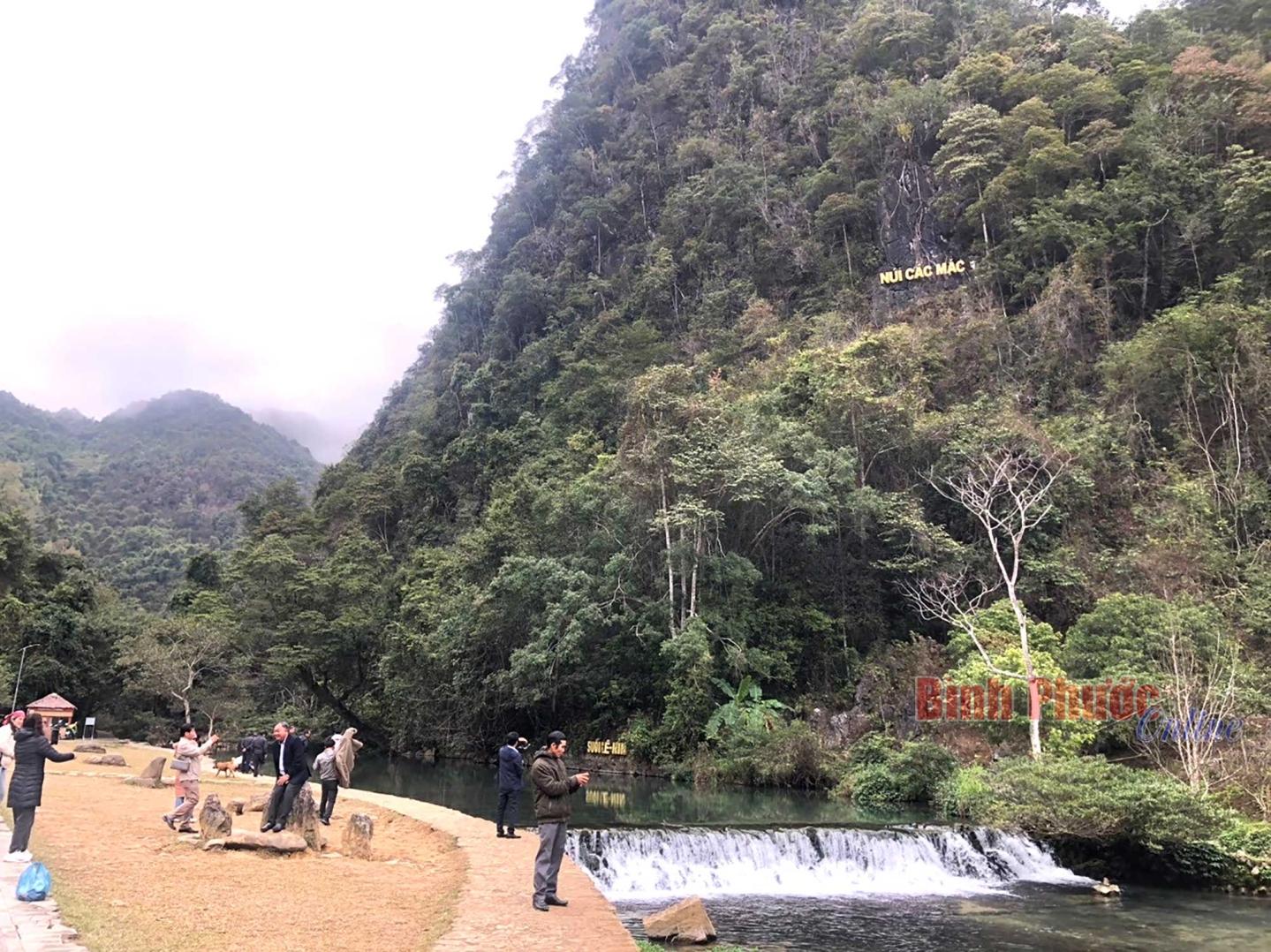 Đoàn công tác BPTV chụp hình trước đường vào hang Cốc Bó