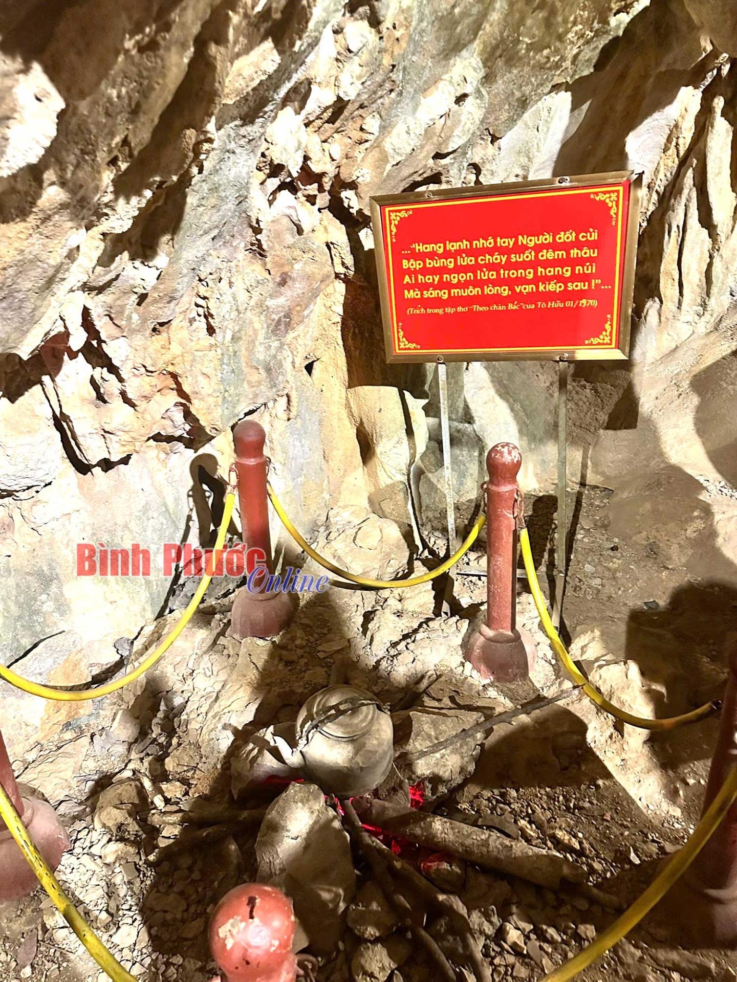 Dẫn chúng tôi đi bộ và leo lên những bậc đá tam cấp một đoạn đường khá dài, chị Trần Thu Hà, hướng dẫn viên du lịch tại Khu di tích quốc gia đặc biệt Pác Bó đưa chúng tôi đến hang Cốc Bó, nơi nghỉ ngơi, làm việc của Bác Hồ. Đứng trước hang Cốc Bó, chúng tôi xúc động và cảm phục trước sự giản dị mà vĩ đại của Bác trong những tháng ngày lãnh đạo cách mạng ở nơi núi rừng Pác Bó. Hang đá sâu thẳm, nhỏ hẹp chỉ vừa 1 người đi. Bên trong hang địa hình mấp mô, ẩm thấp. Qua lời kể của hướng dẫn viên Trần Thu Hà thì nơi đây Bác và các cán bộ cách mạng từng ngồi làm việc và dịch các tài liệu quan trọng. Cách cửa hang khoảng 10m là bếp sưởi. Thời điểm Bác về đây, thời tiết vùng cao núi đá chuyển sang rét buốt. Trong hang không có chăn, chiếu, Bác và các cán bộ cách mạng không ngủ được nên dậy đốt lửa vừa để sưởi ấm vừa đọc, nghiên cứu tài liệu. Tuy thiếu thốn về cơ sở vật chất, ấy vậy mà Bác vẫn luôn lạc quan cách mạng ắt thành công. Chính tại nơi hang cùng suối thẳm ấy, Bác vẽ nên một khung cảnh đầy thi vị trong bài thơ “Tức cảnh Pác Bó”: