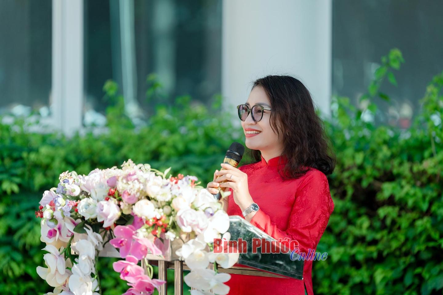 Tỉnh ủy viên, Bí thư Đảng ủy, Giám đốc - Tổng Biên tập BPTV Nguyễn Thị Minh Nhâm phát biểu định hướng hoạt động, công tác tháng 5 tại lễ chào cờ