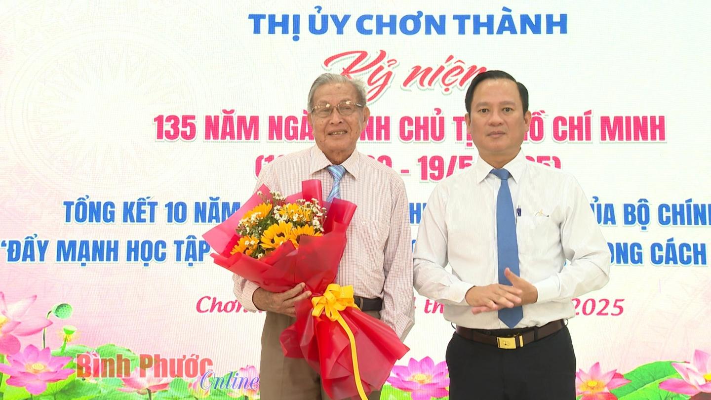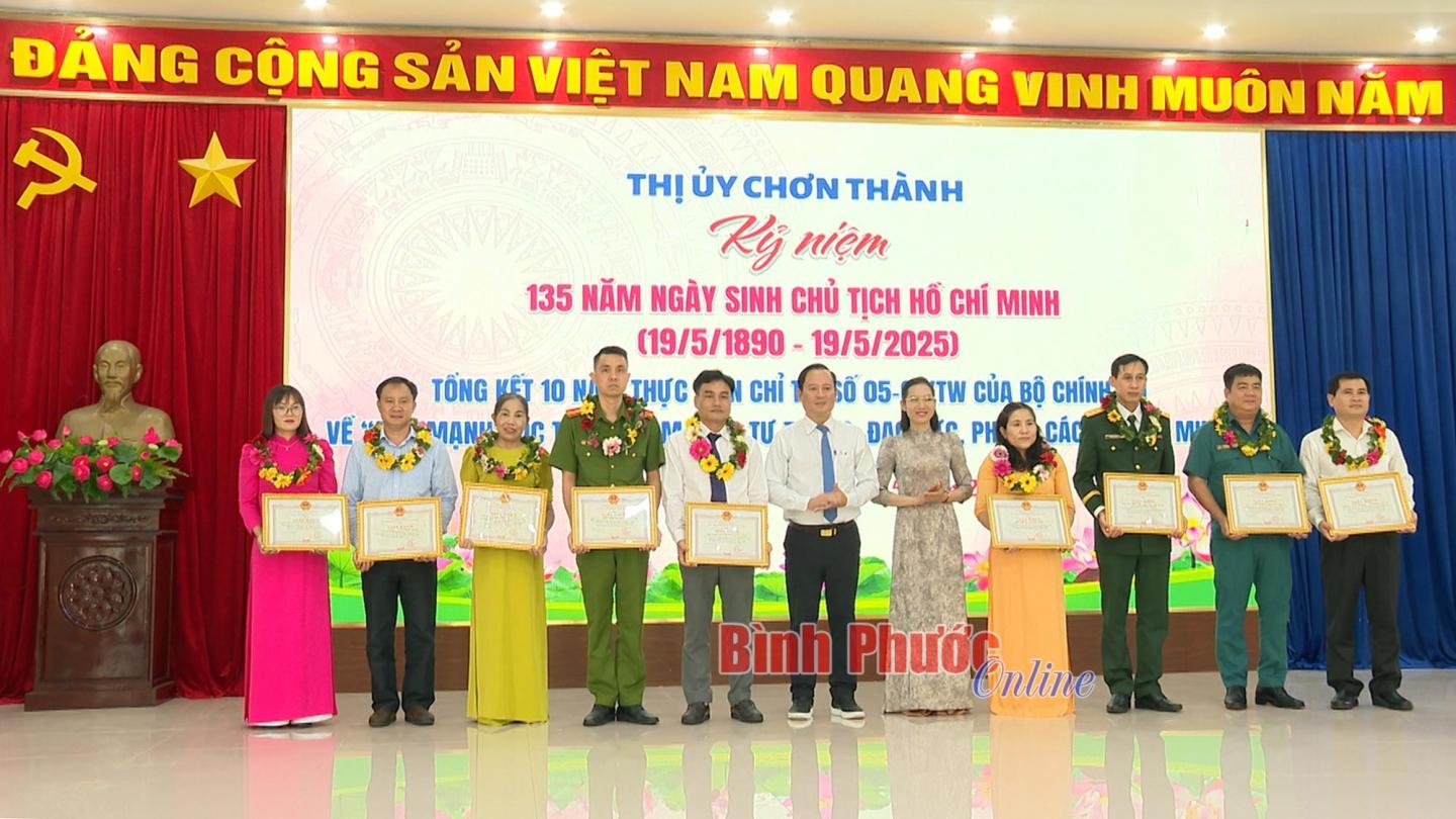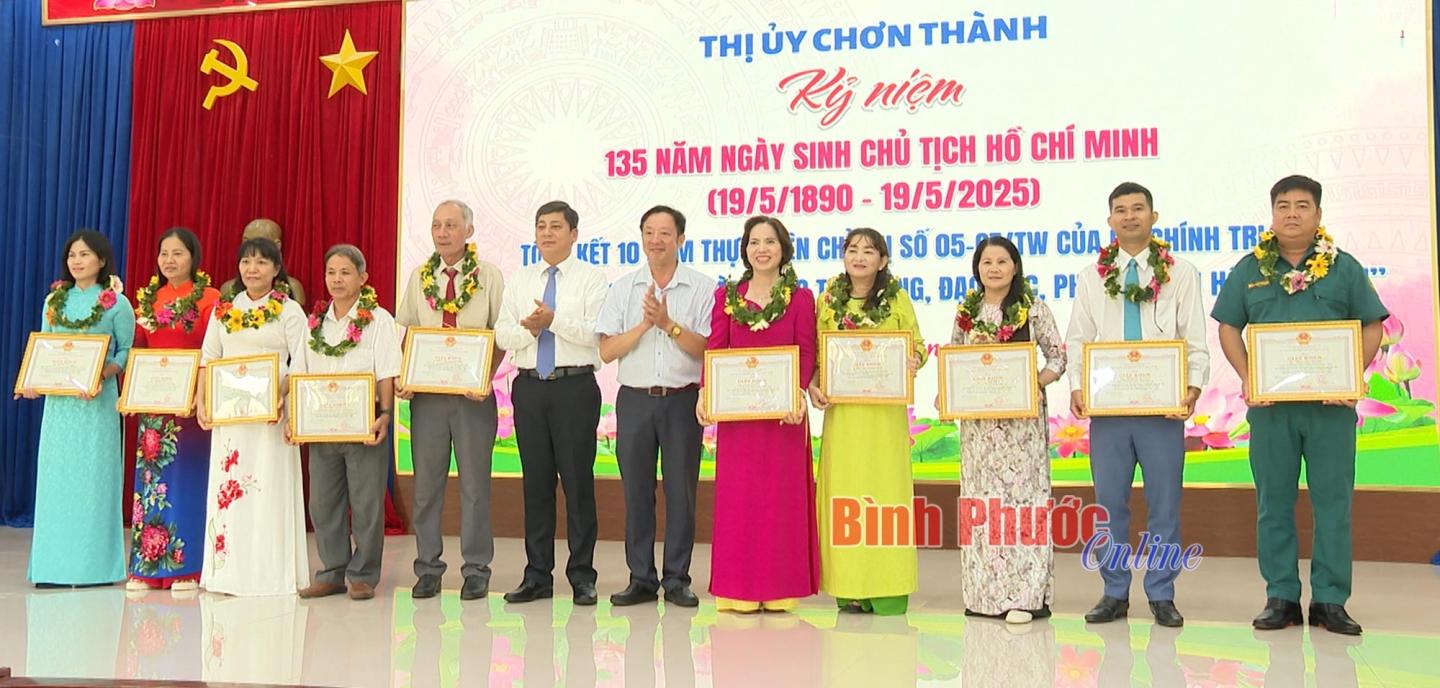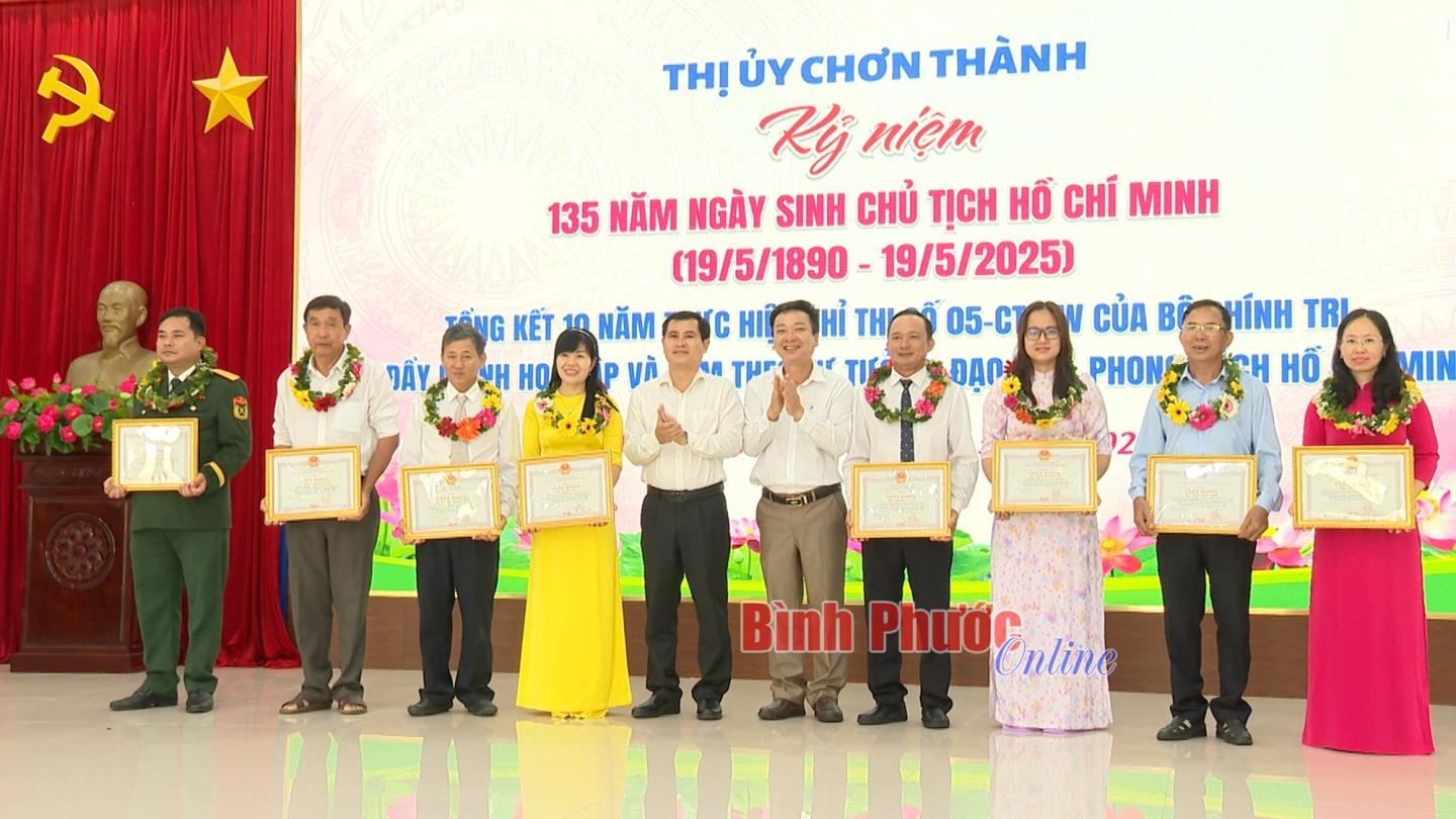 Dịp này, lãnh đạo thị xã Chơn Thành đã tuyên dương 1 tập thể, 1 cá nhân được đề nghị UBND tỉnh tặng bằng khen; tuyên dương, khen thưởng 10 tập thể, 19 cá nhân tiêu biểu, điển hình trong học tập và làm theo tư tưởng, đạo đức, phong cách Hồ Chí Minh, giai đoạn 2016-2025.