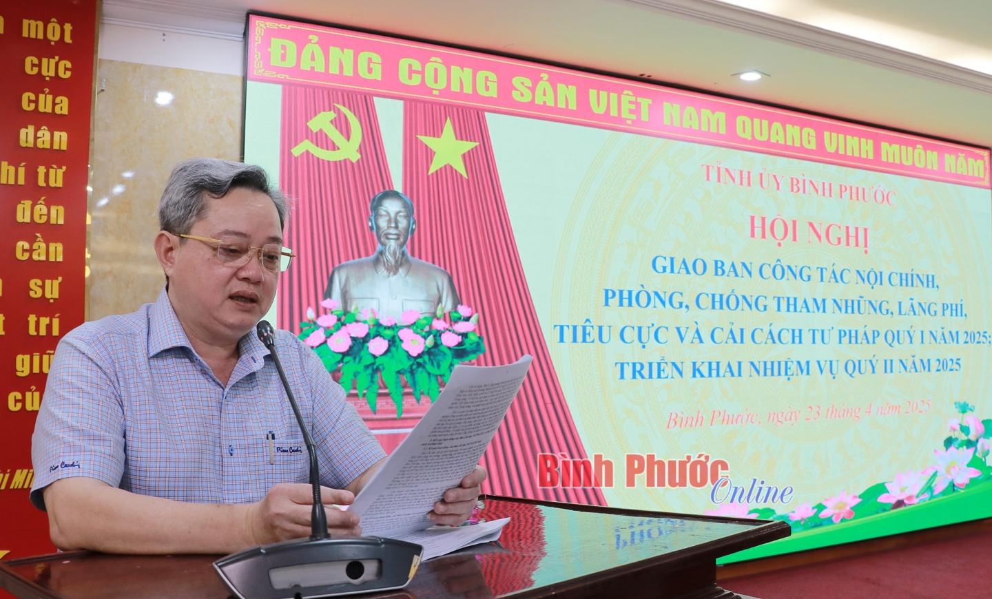 Ủy viên Ban Thường vụ, Trưởng ban Nội chính Tỉnh ủy Nguyễn Minh Hợi thông qua báo cáo công tác nội chính, phòng, chống tham nhũng, lãng phí, tiêu cực và cải cách tư pháp quý I/2025