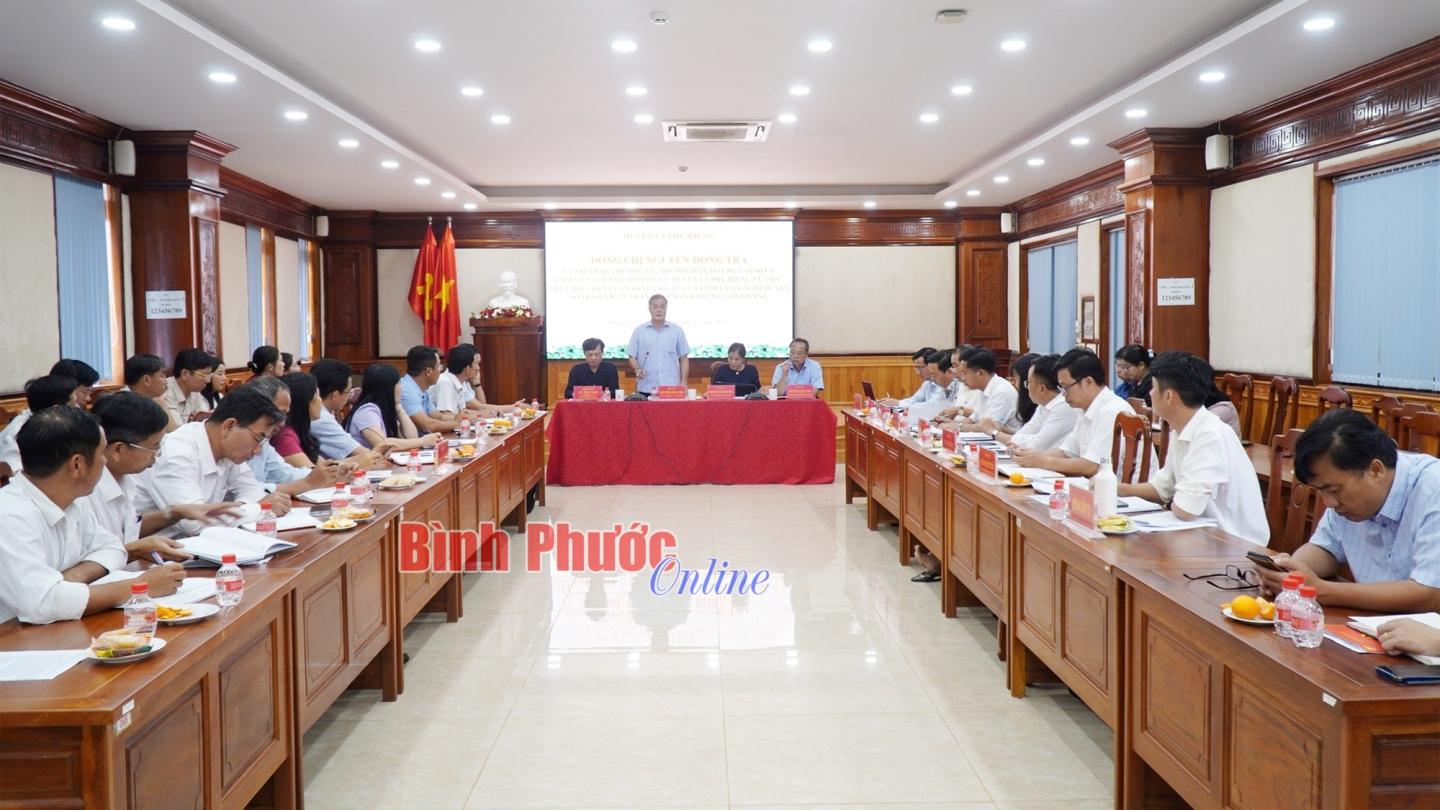 Ủy viên Ban Thường vụ Tỉnh ủy Nguyễn Hồng Trà làm việc với Ban Thường vụ Huyện ủy Phú Riềng