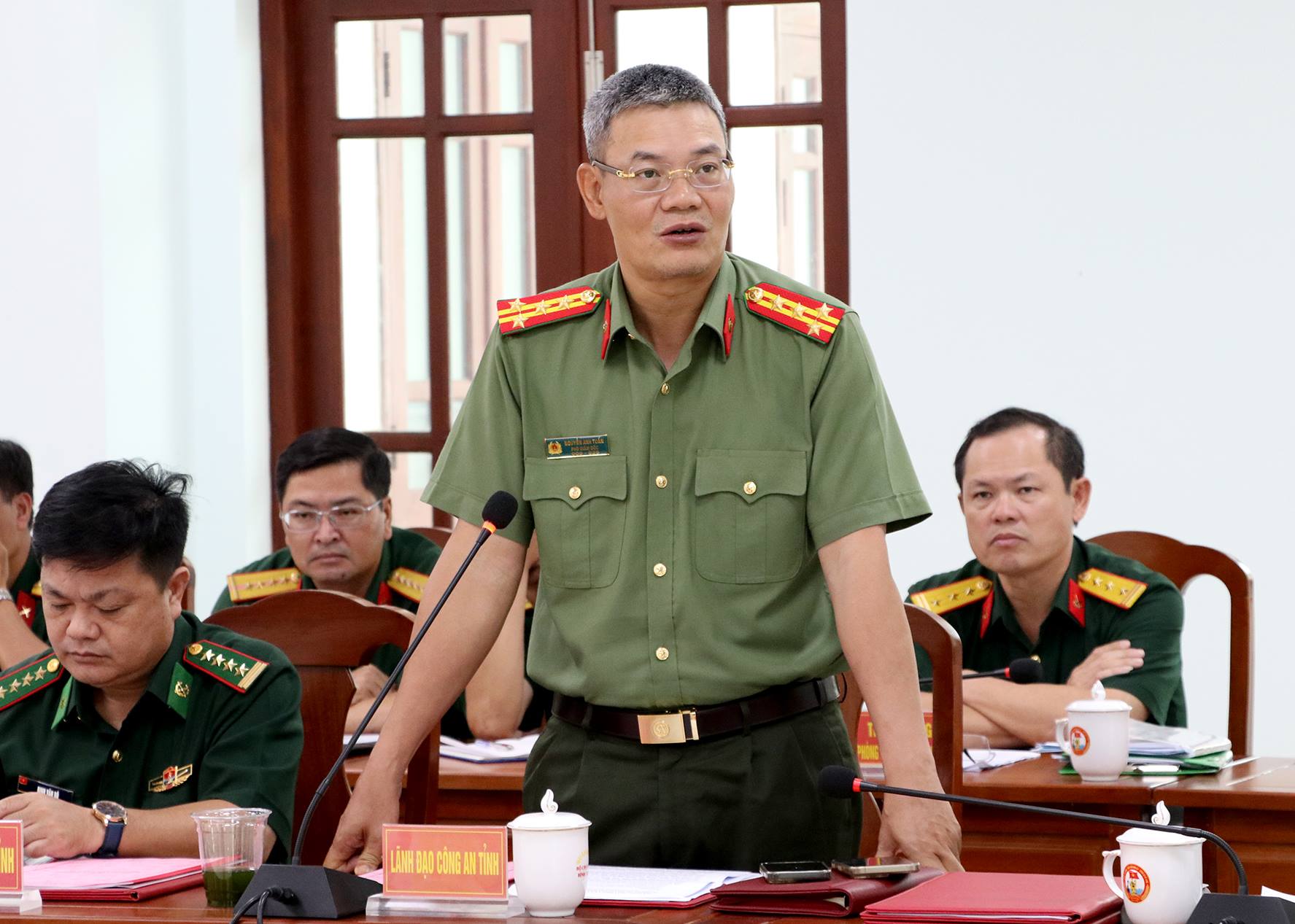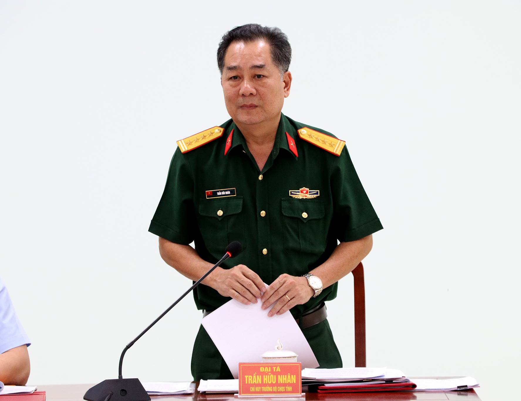 Đại tá Trần Hữu Nhân - Chỉ huy trưởng Bộ CHQS tỉnh phát biểu tại buổi làm việc