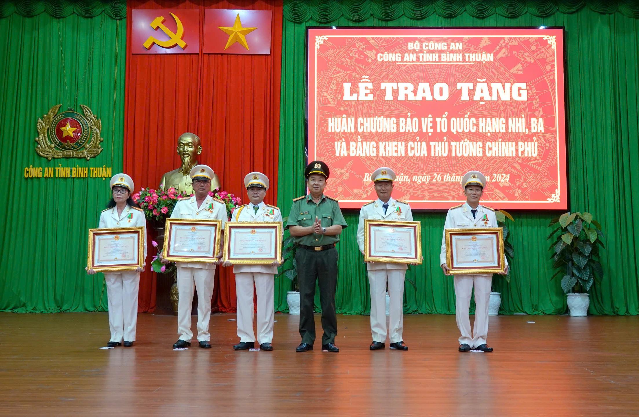 Tại buổi lễ, Ban Tổ chức đã công bố Quyết định và trao tặng Huân chương Bảo vệ Tổ quốc hạng Nhì của Chủ tịch nước cho tập thể Đội An ninh, Công an huyện Hàm Tân; tặng Huân chương Bảo vệ Tổ quốc hạng Ba cho 06 đồng chí nguyên là lãnh đạo, chỉ huy có quá trình cống hiến; tặng Bằng khen của Thủ tướng Chính phủ cho 2 tập thể và 1 cá nhân thuộc Công an tỉnh Bình Thuận có thành tích xuất sắc trong chiến đấu và phục vụ chiến đấu, xây dựng lực lượng CAND, giữ gìn trật tự an toàn xã hội, góp phần vào sự nghiệp xây dựng xã hội chủ nghĩa và bảo vệ Tổ quốc.