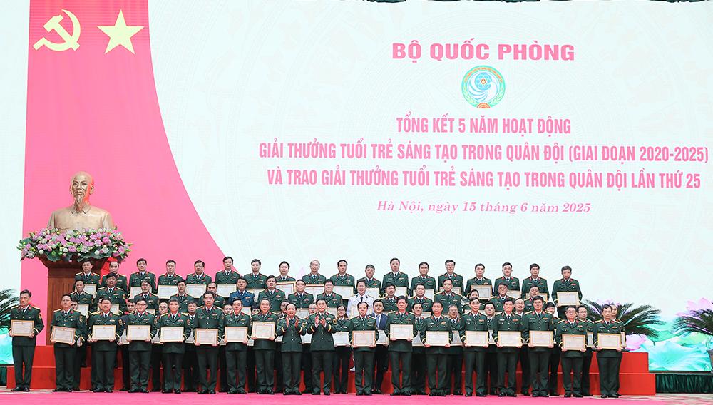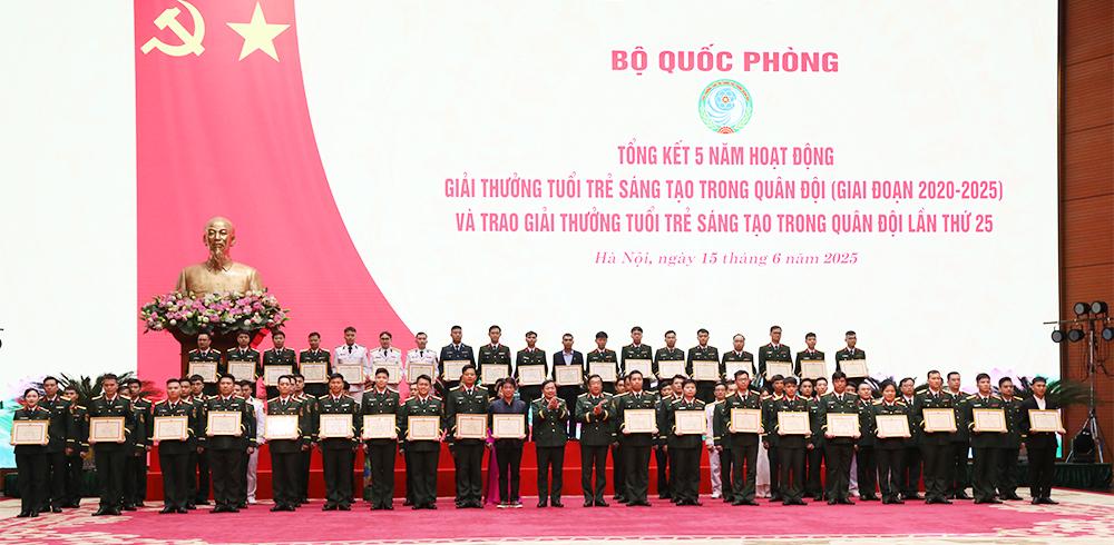 Đại tướng Phan Văn Giang và Thượng tướng Trịnh Văn Quyết, Bí thư Trung ương Đảng, Ủy viên Thường vụ Quân ủy Trung ương, Chủ nhiệm Tổng cục Chính trị QĐND Việt Nam trao trao Bằng khen tặng các tập thể, đại diện các công trình đạt giải Nhất Giải thưởng TTST trong Quân đội lần thứ 25 và các tập thể, cá nhân có thành tích tiêu biểu giai đoạn 2020 - 2025.