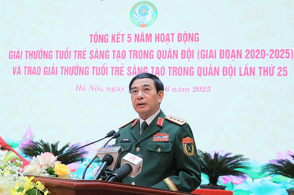 Phát biểu chỉ đạo và động viên thanh niên Quân đội tại buổi lễ, Đại tướng Phan Văn Giang khẳng định, những năm qua, Quân ủy Trung ương, Bộ Quốc phòng, lãnh đạo, chỉ huy các cơ quan, đơn vị toàn quân luôn quan tâm, lãnh đạo, chỉ đạo, tạo điều kiện thuận lợi để tuổi trẻ Quân đội tham gia nghiên cứu, phát triển và ứng dụng hiệu quả khoa học, công nghệ, chuyển đổi số trong hoạt động quân sự, quốc phòng. Đồng thời, bày tỏ sự vui mừng phấn khởi khi nhận thấy, sau 25 năm tổ chức, các công trình tham gia Giải thưởng TTST trong Quân đội đã có sự phát triển cả về số lượng, chất lượng và tính hiệu quả, trong đó, có một số công trình không chỉ được ứng dụng trong toàn quân, trong nước mà còn vươn tầm thế giới.