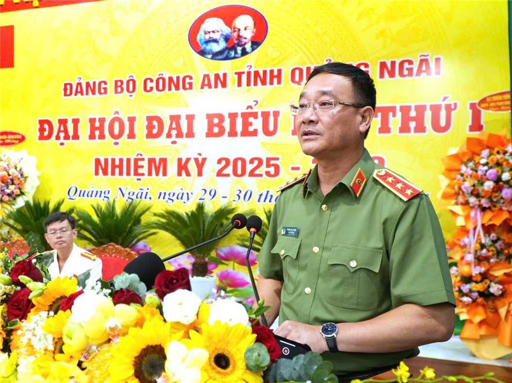 Phát biểu chỉ đạo Đại hội, Thứ trưởng Phạm Thế Tùng ghi nhận, chúc mừng, đánh giá cao nỗ lực, quyết tâm và những kết quả mà Đảng bộ Công an tỉnh Quảng Ngãi đã đạt được trong nhiệm kỳ qua.