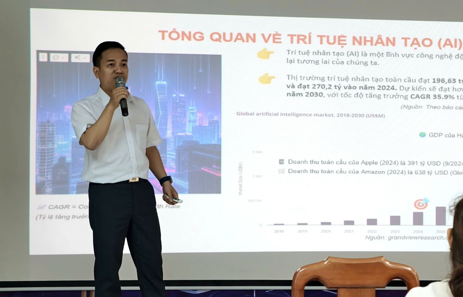 Trong khuôn khổ Hội nghị, ông Cao Quí Long – giảng viên Trung tâm Phát triển Thương mại điện tử và Công nghệ số (eComDX) đã trình bày các nội dung tập huấn liên quan đến ứng dụng công nghệ số và trí tuệ nhân tạo trong thực tiễn quản lý và hoạt động sản xuất, kinh doanh. Nội dung tập huấn tập trung trang bị kiến thức, kỹ năng cho cán bộ, công chức và doanh nghiệp trong việc ứng dụng công nghệ số vào công tác quản lý, theo dõi và triển khai nhiệm vụ, qua đó nâng cao hiệu quả điều hành và tổ chức thực hiện trong bối cảnh chuyển đổi số.